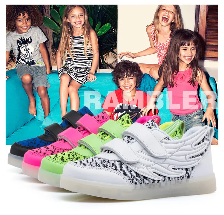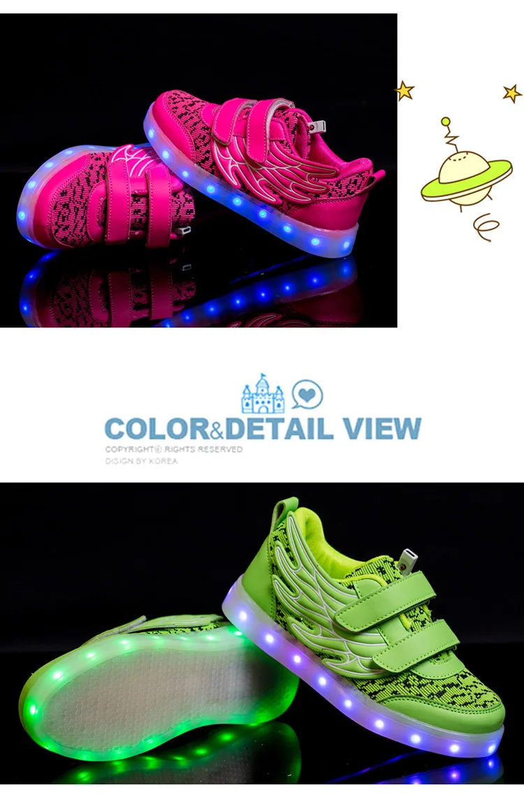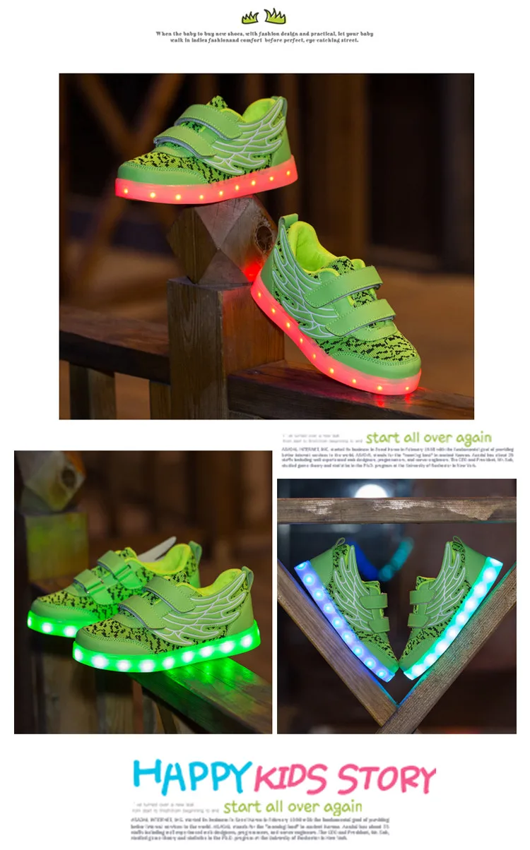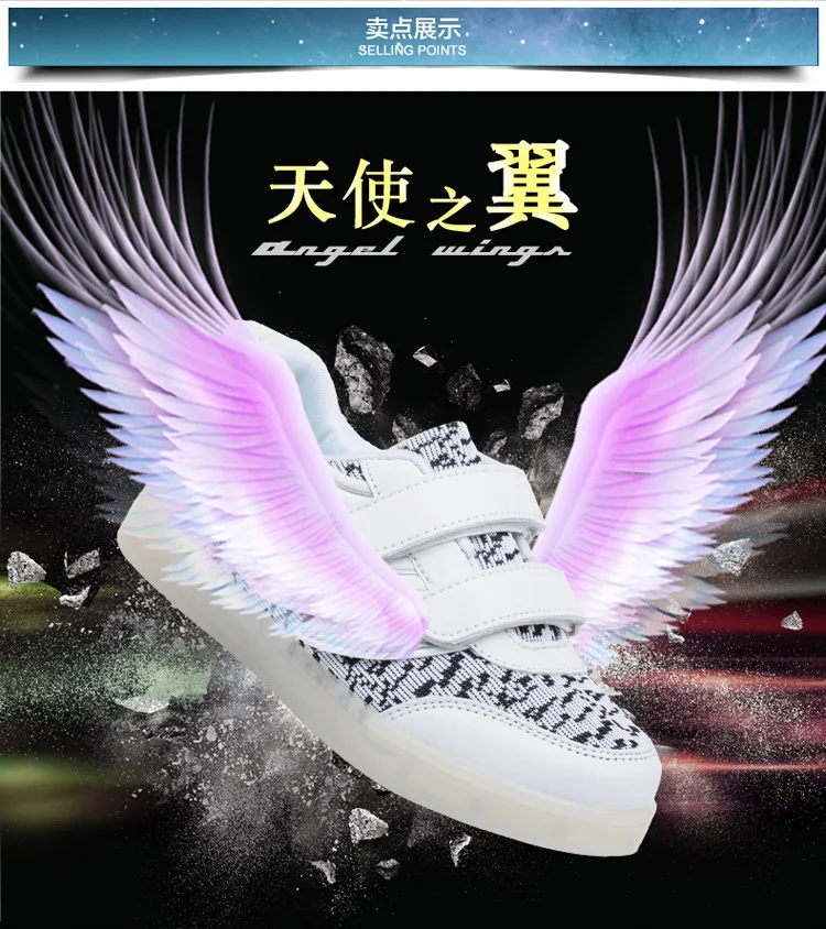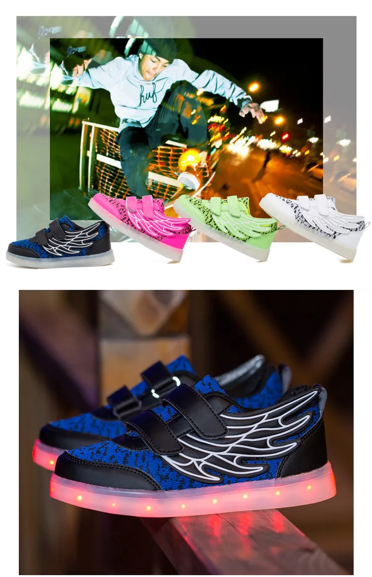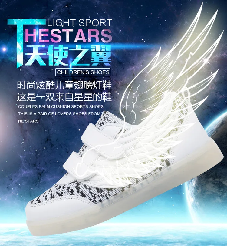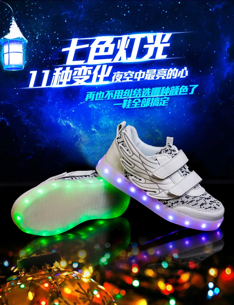 2017 New Fashion USB Rechargeable LED Light Casual Shoes/Boys and Girls Wings Flying Series High Quality Leisure Sneaker