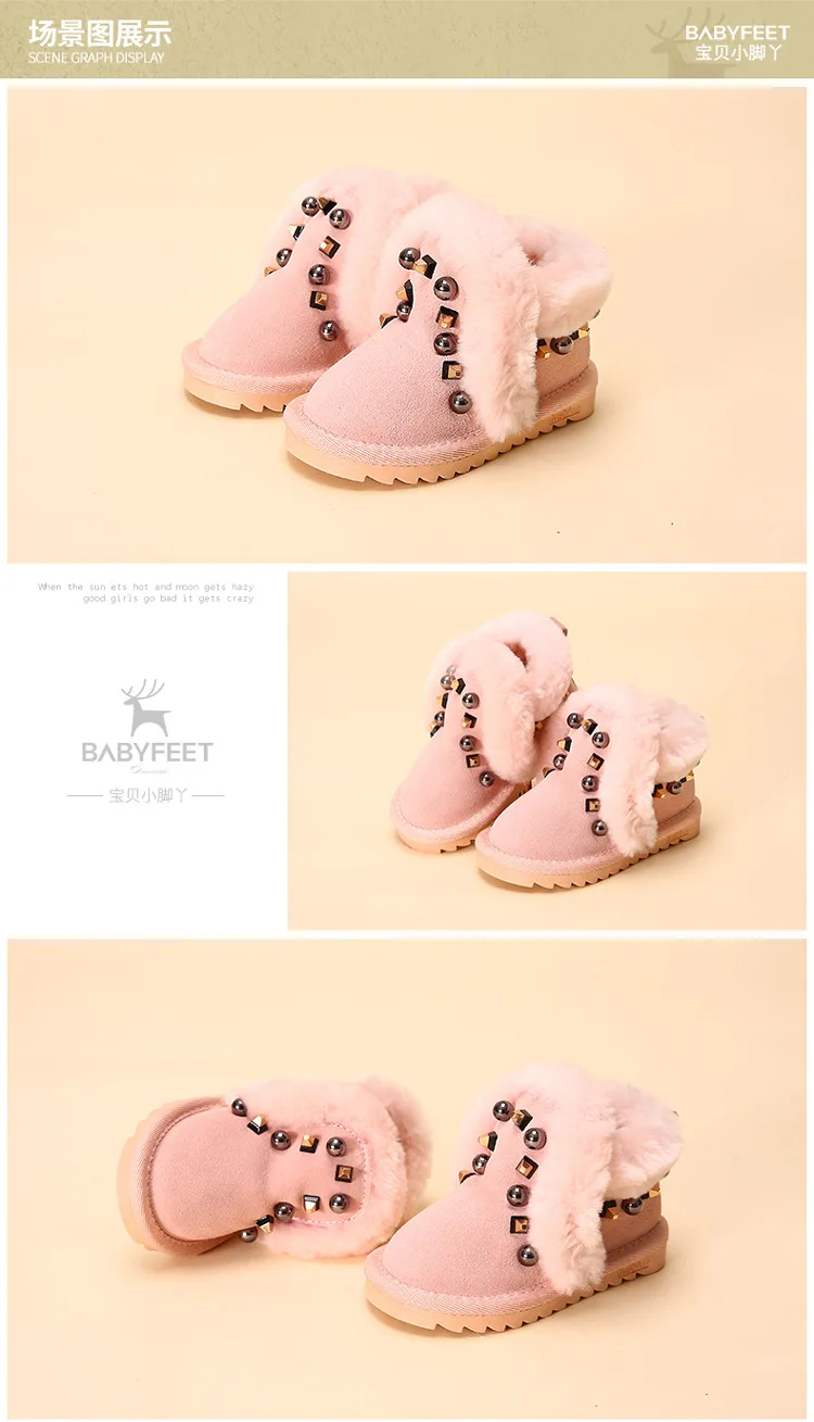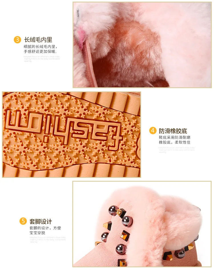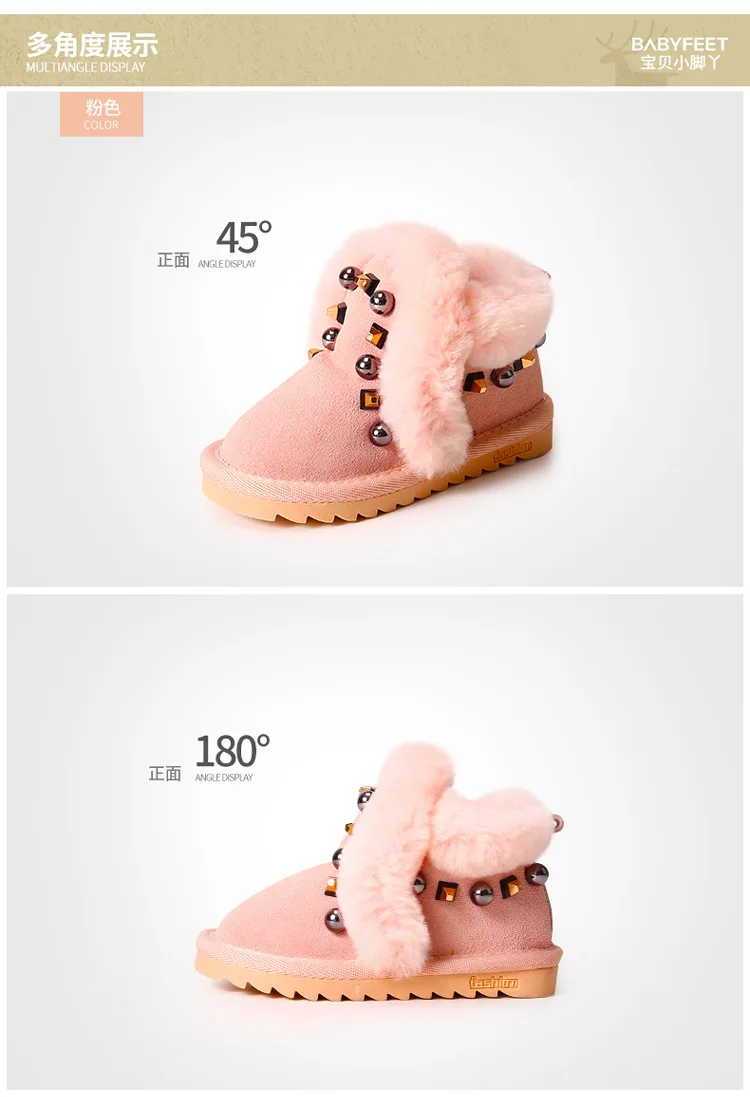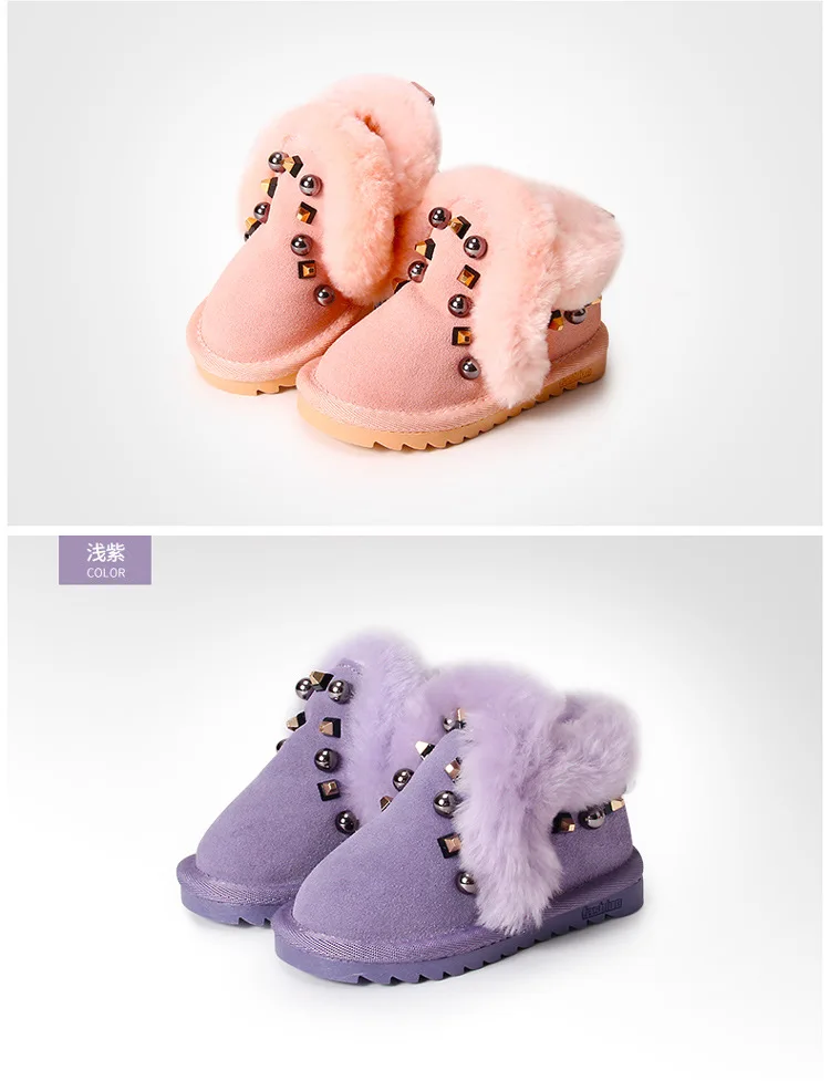 2017 Winter New Genuine Leather Baby Snow Boots, Anti Slip Soft Bottom, Girls’ Princess Shoes, Children’s Winter Boots, Short Boots