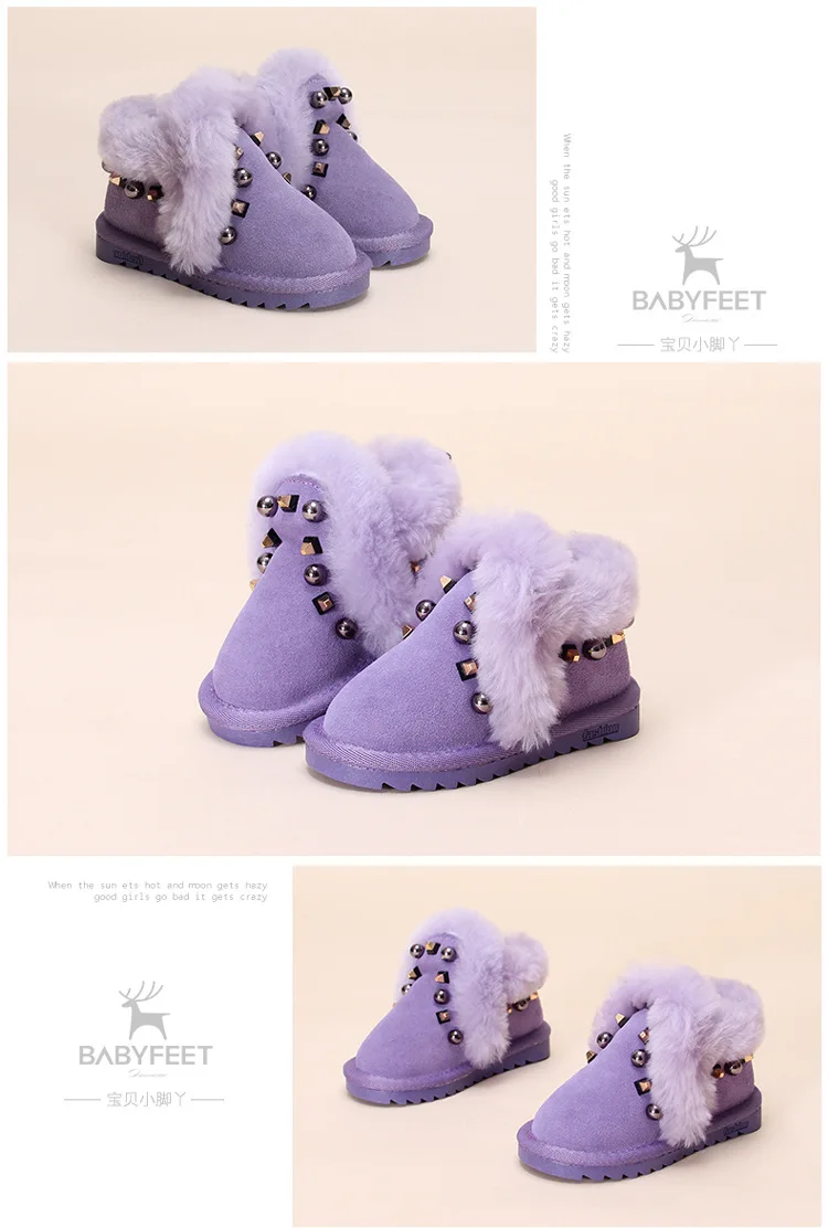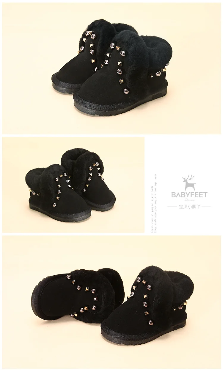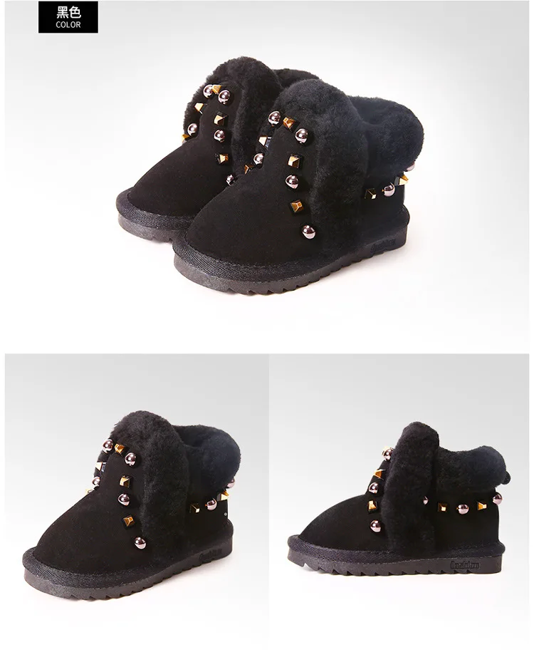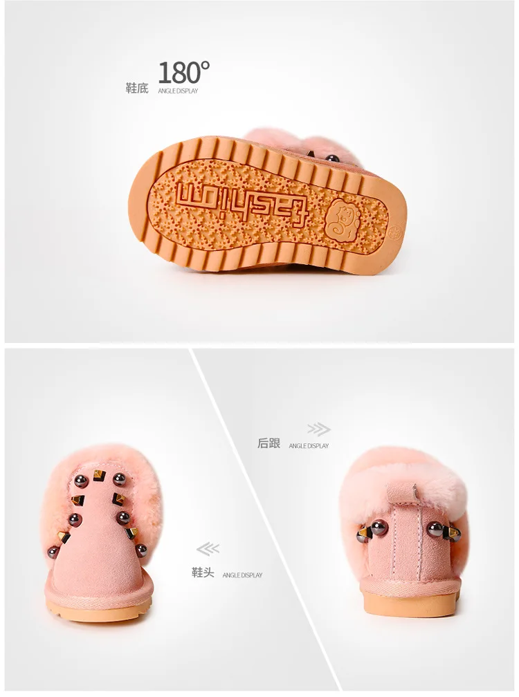 2017 Winter New Genuine Leather Baby Snow Boots, Anti Slip Soft Bottom, Girls’ Princess Shoes, Children’s Winter Boots, Short Boots