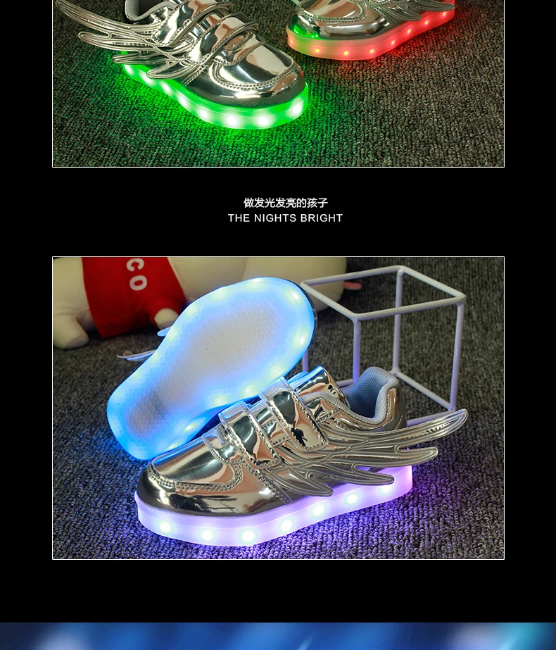 2017 New usb charging glowing sneakers Kids Running led wings kids lights up luminous shoes girls boys fashion shoes