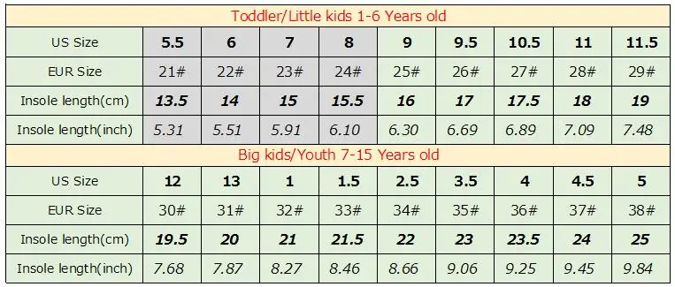 2) If your child’s foot is fat and wide,please select a bigger size.