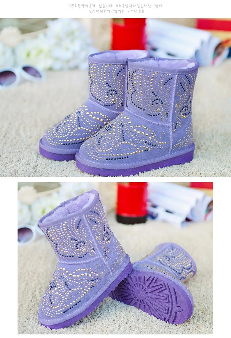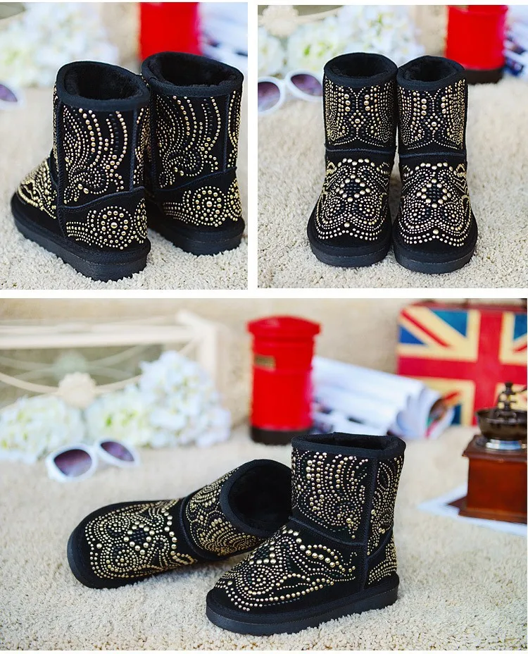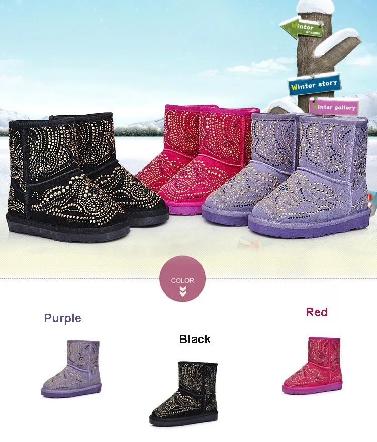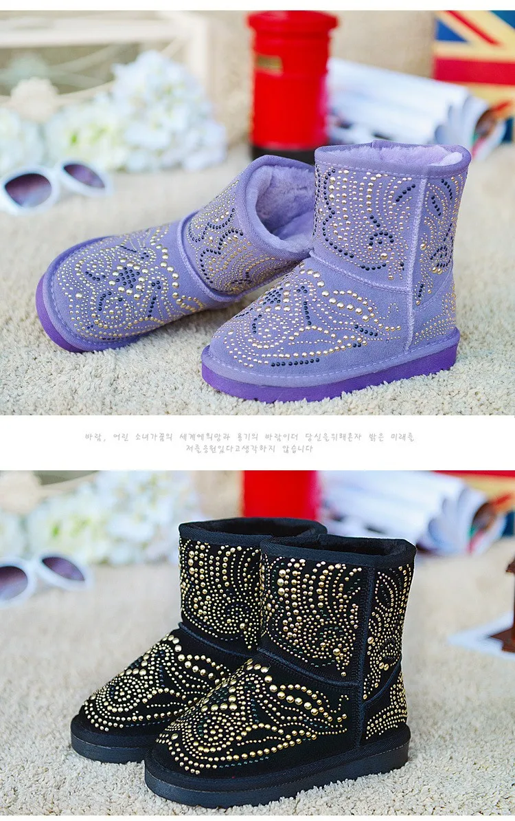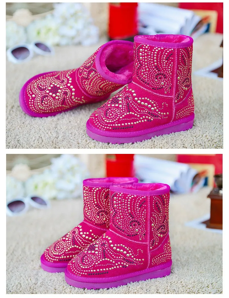 2016 New Winter Children Snow Boots Sequins Kids Boys Leather Boots