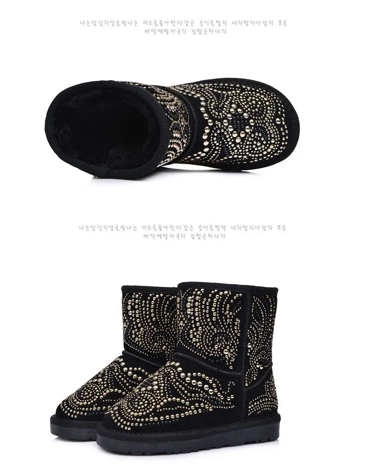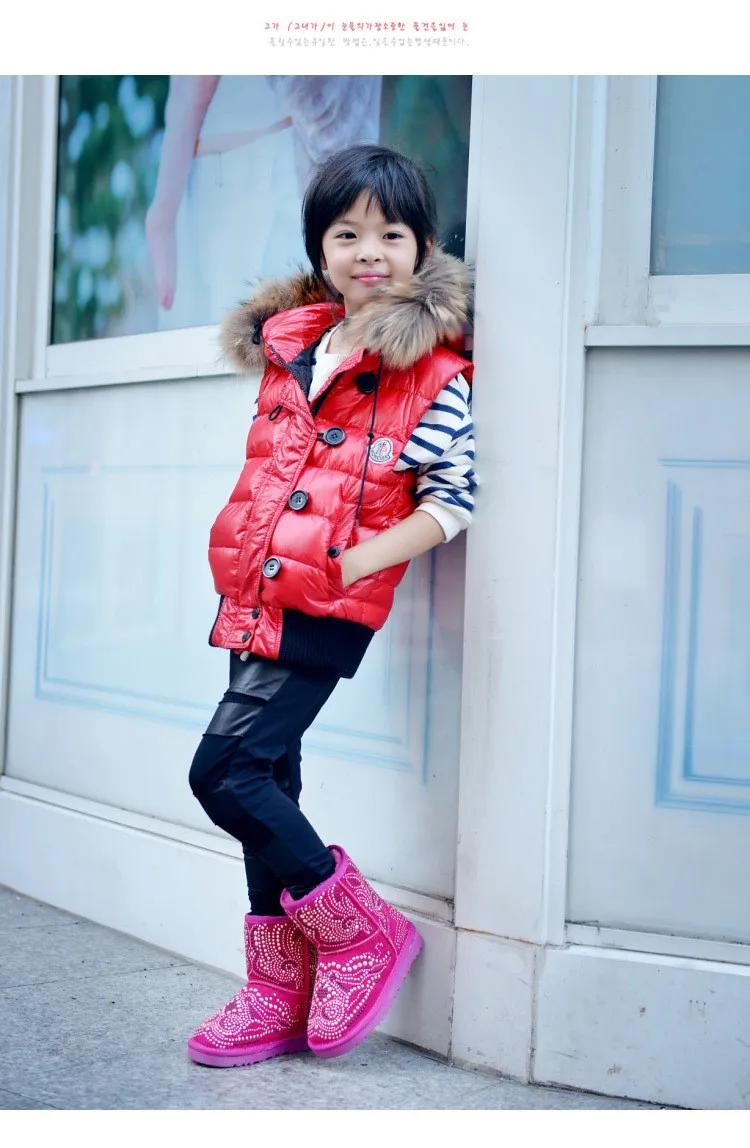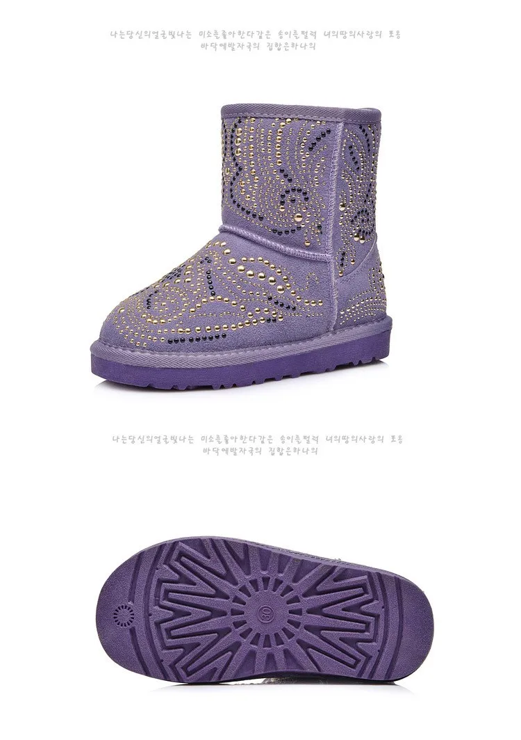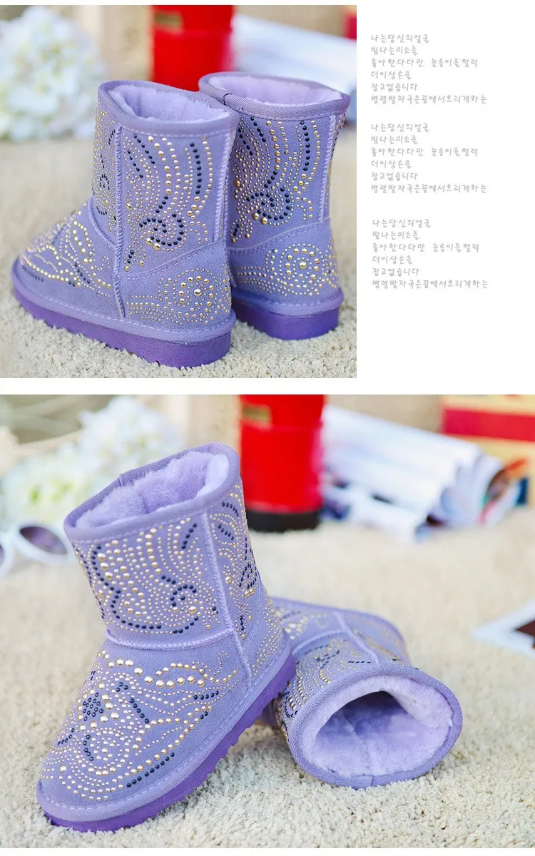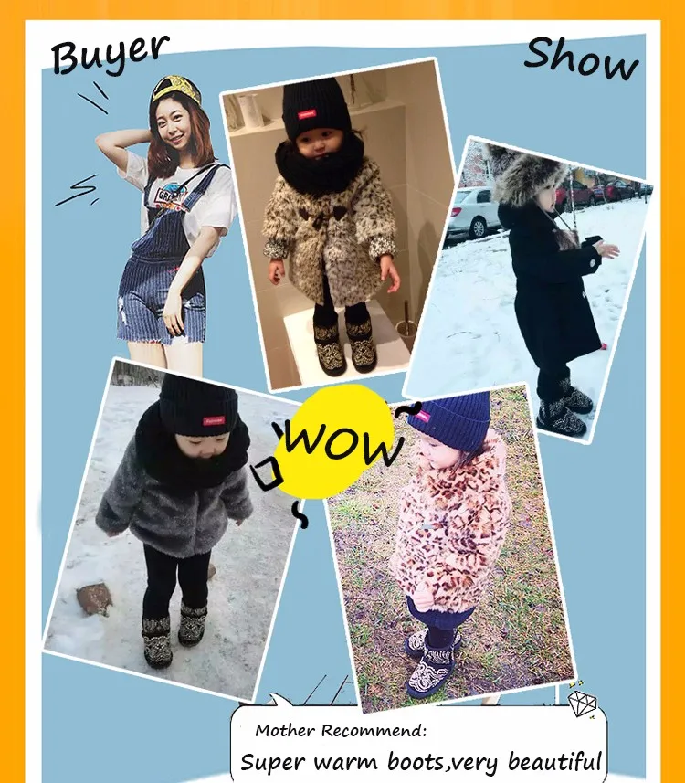 2016 New Winter Children Snow Boots Sequins Kids Boys Leather Boots