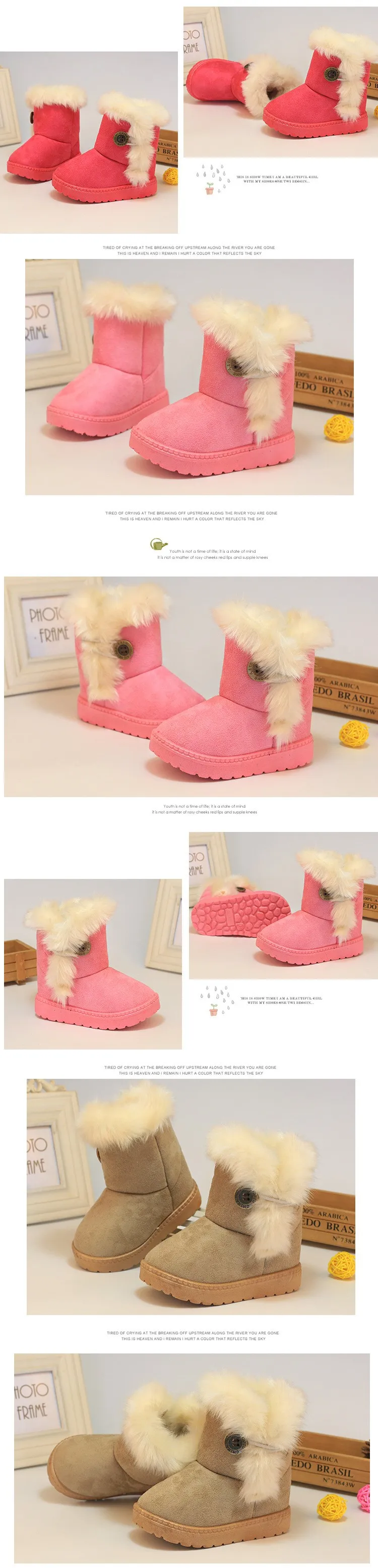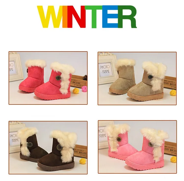 2017 New Winter Children Snow Boots Thick Warm Cotton-Padded Kids Shoes Slip-resistant Buckle Suede Boots Plush Girls Boots