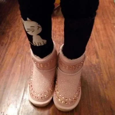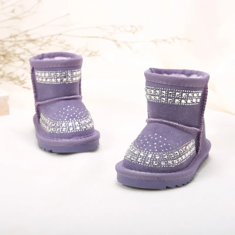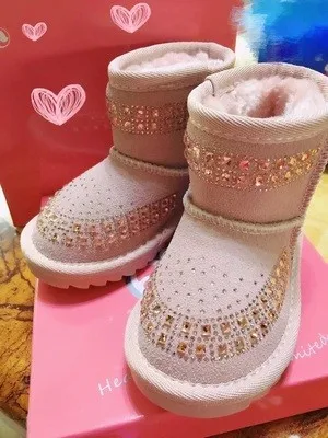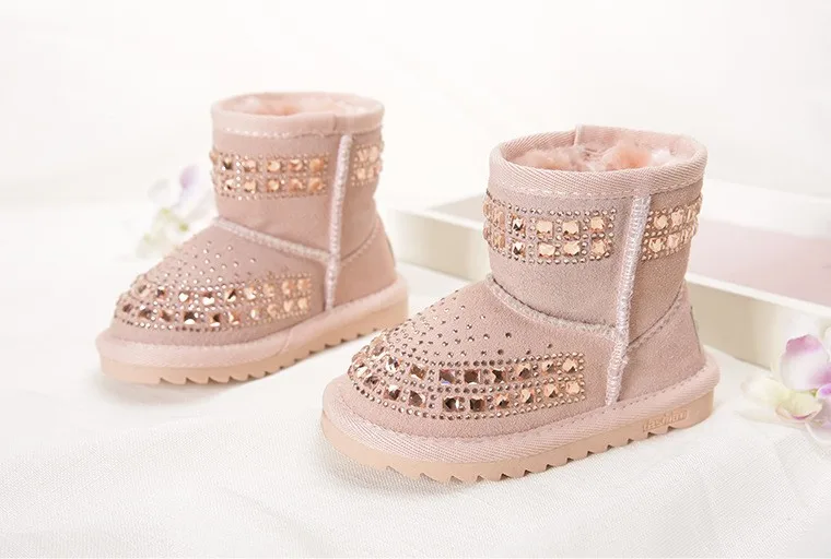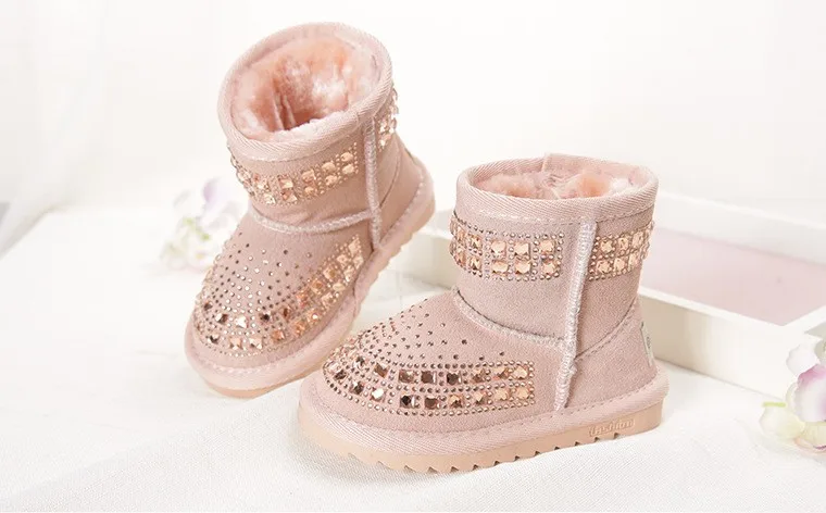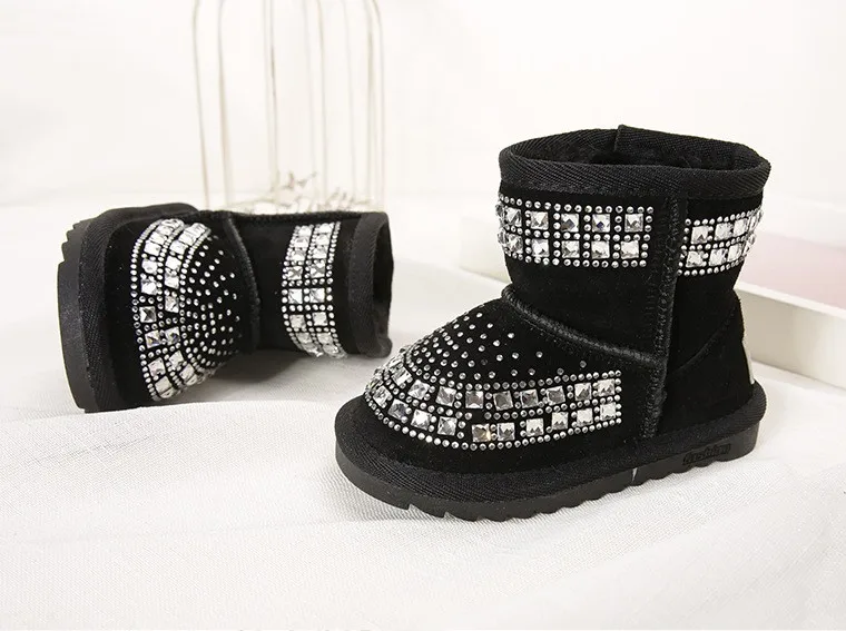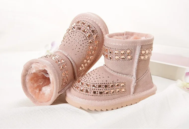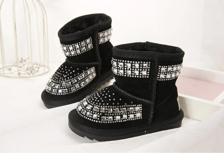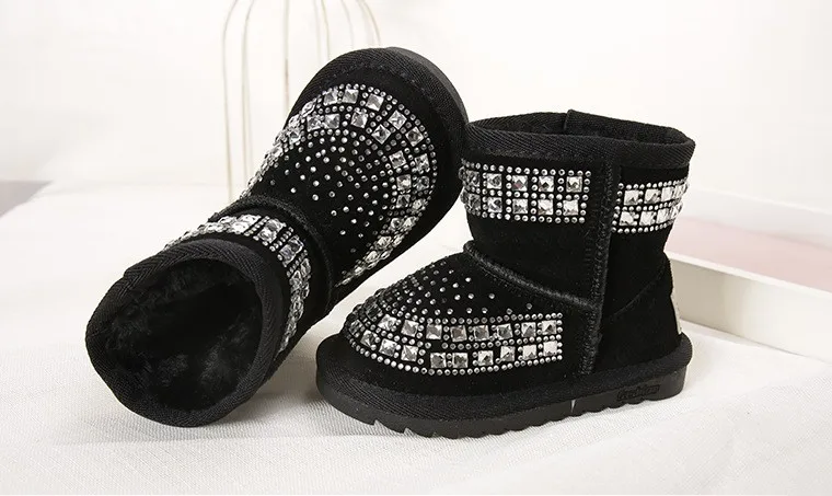 2017 Winter New Fashion Children Snow Boots Reihnstone Kids Leather Boots