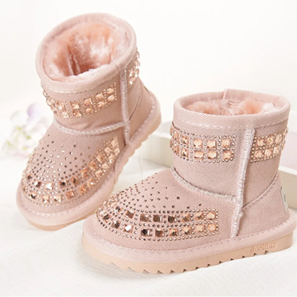 2017 Winter New Fashion Children Snow Boots Reihnstone Kids Leather Boots