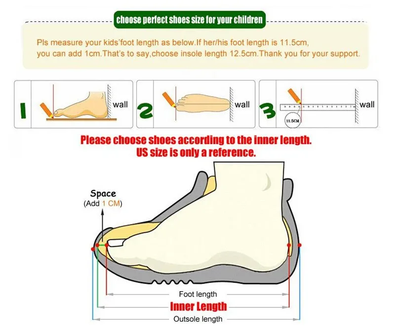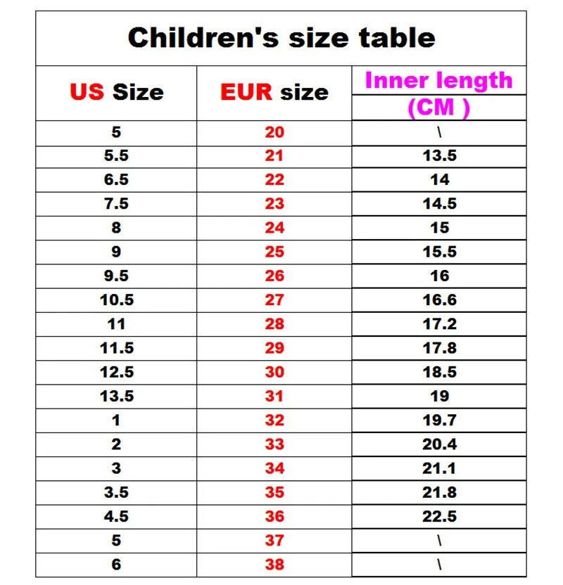 Welcome to my shop:http://www.aliexpress.com/store/1727374 Note: The US size not the shoes of the standard size. US size only For buyers to purchase use . The buyers according EURO/cm buy the right shoes. Children foot length + 1 cm = INSOLE 1 inch = 2.54 cm