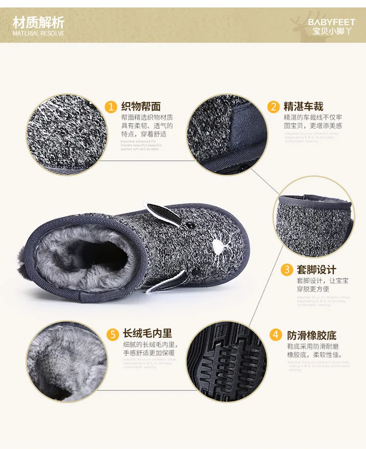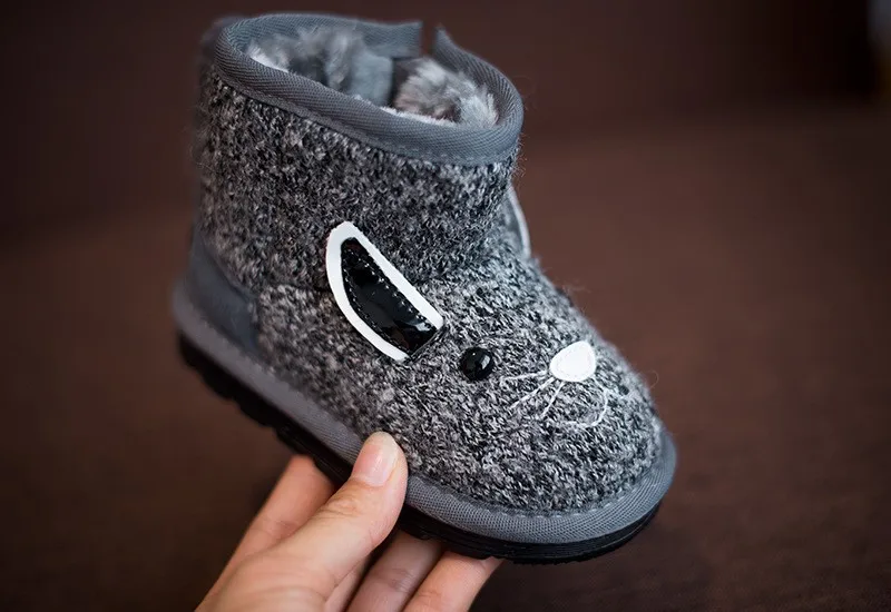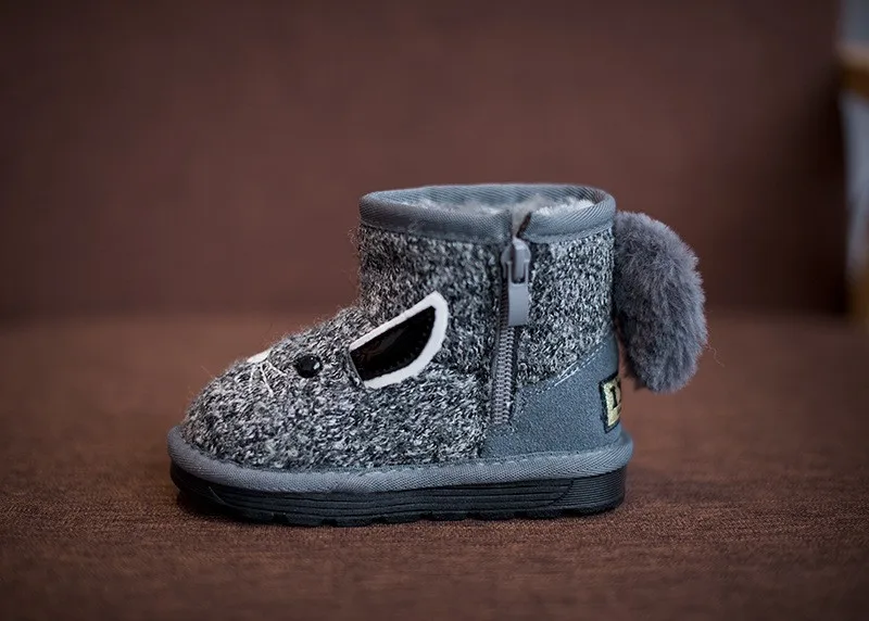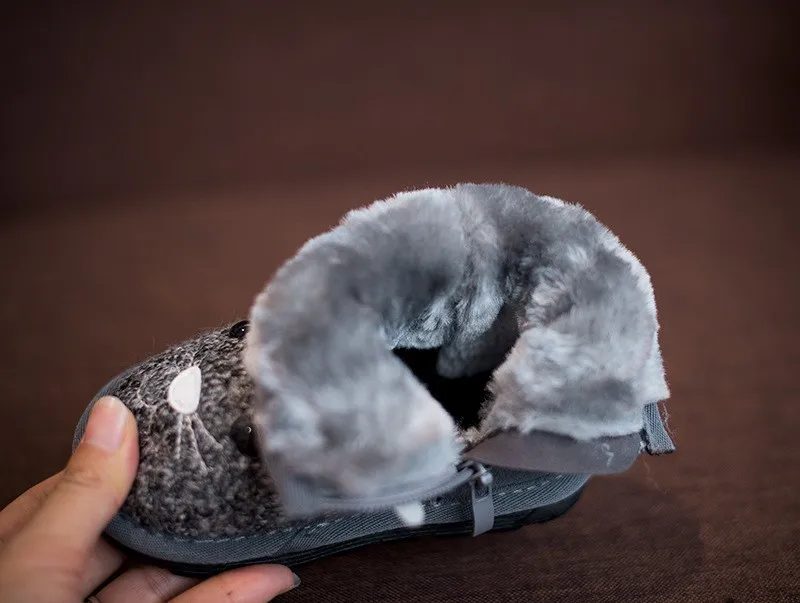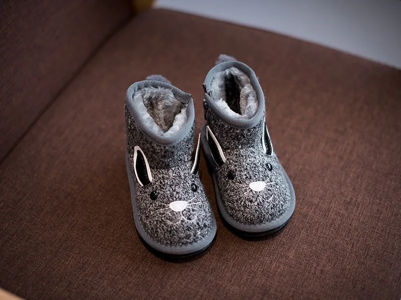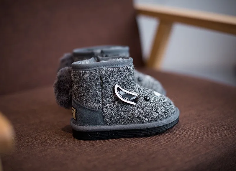 Animal embroidery girls snow boots girls warm boots with fur black grey girls winter boots winter shoes for kids boots