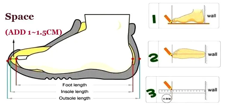 If Your Kid’s Foot Length Is 14CM, so ADD 1 CM,You May Chose Inner Length 15CM or 15.5cm. (Insole Length = Kids’s Foot Length +(1 ~ 1.5)Cm)