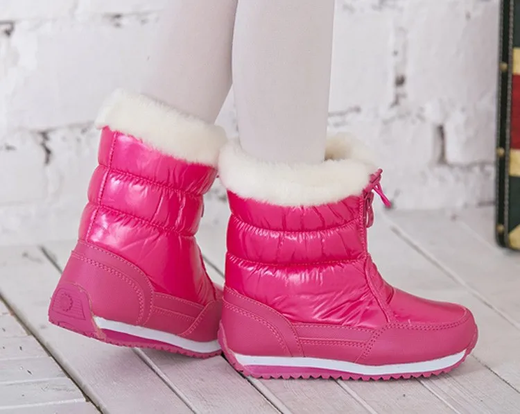 Candy Color Girls Snow Boots Waterproof Winter Children Boots Plush Lining Warm Shoes For Girl Skidproof