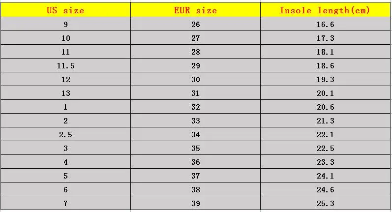 Please notice that the size above is inner length. And there maybe 0-1cm error due to the measure by hand. The size you need=length of your child’s feet+1~2cm Please choose the bigger size for the children’s feet grow very fast.