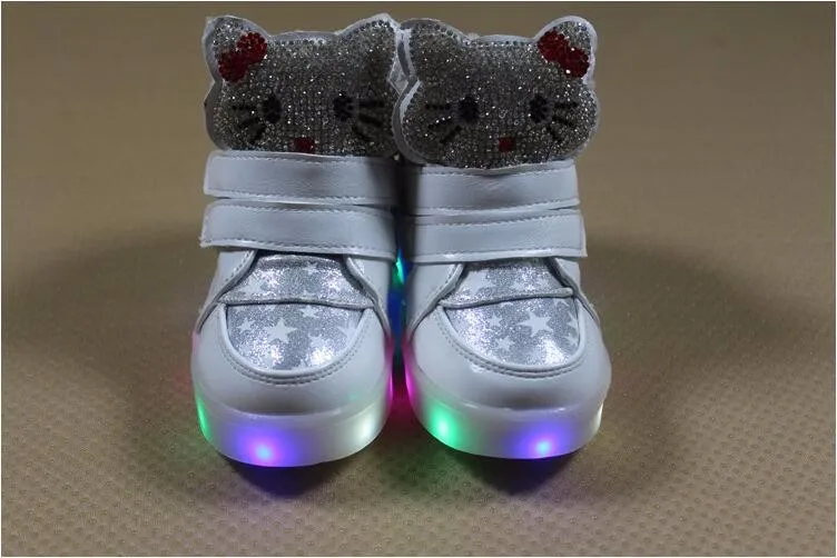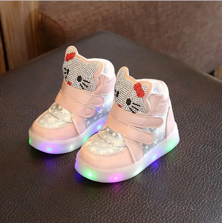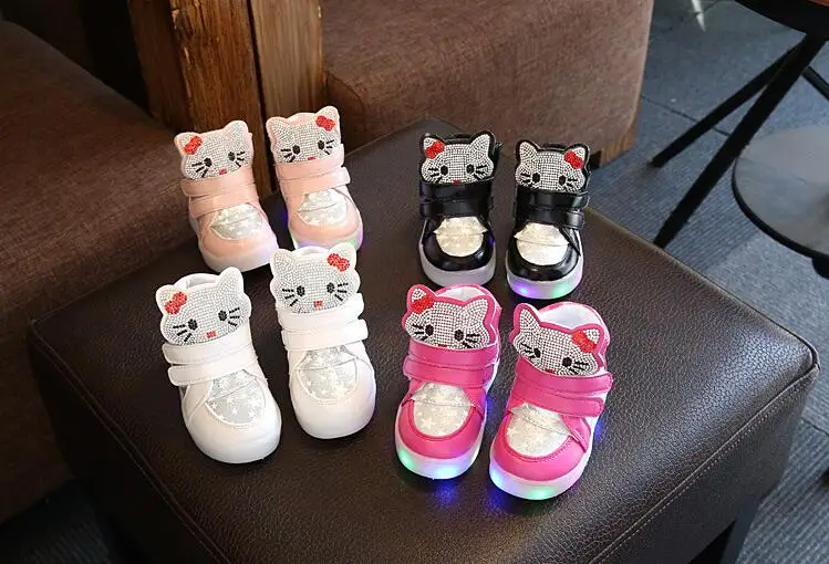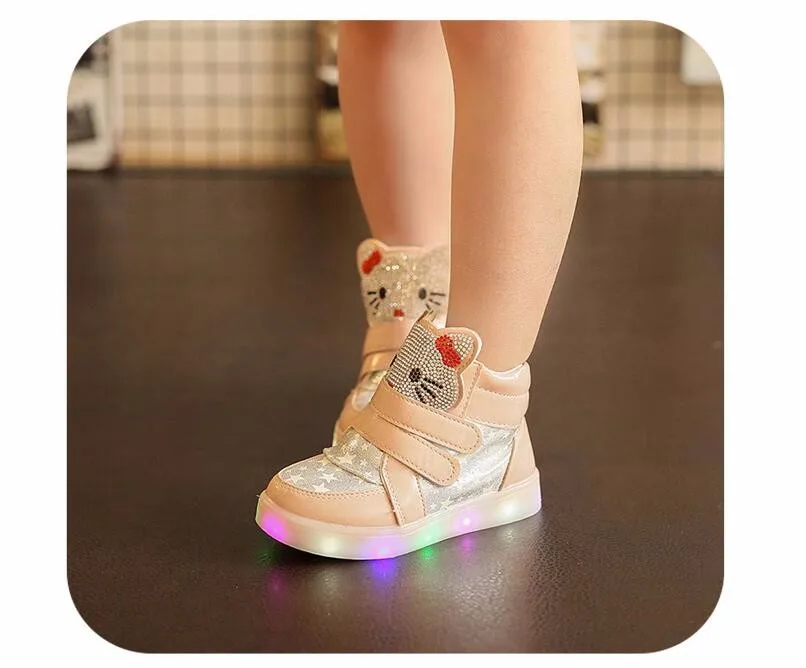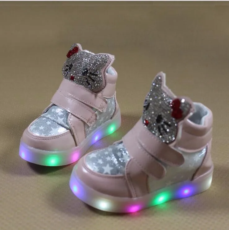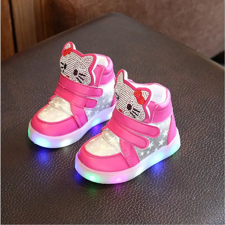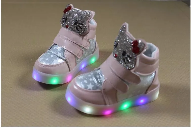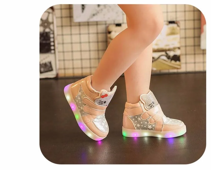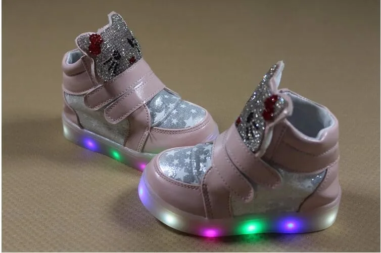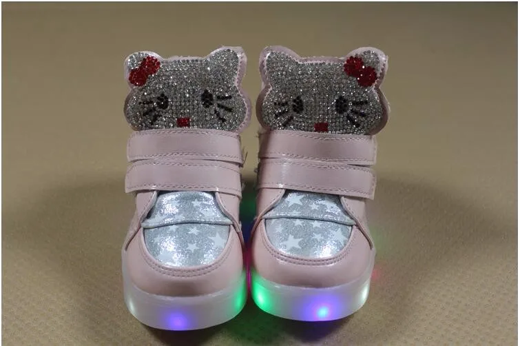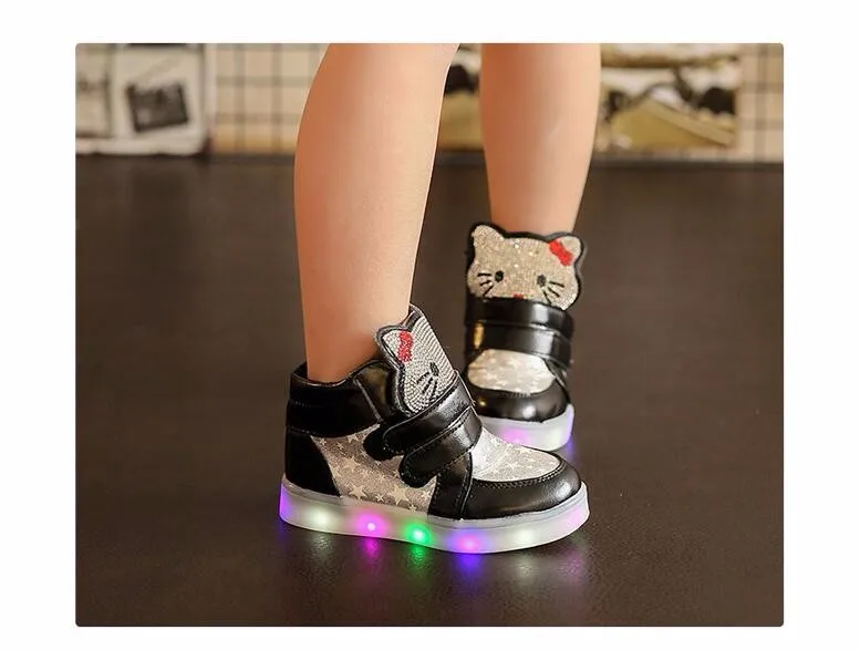Children cartoon KT casual shoes new network hollow breathable sports shoes girls flashing LED fashion glowing sneakers 21-30