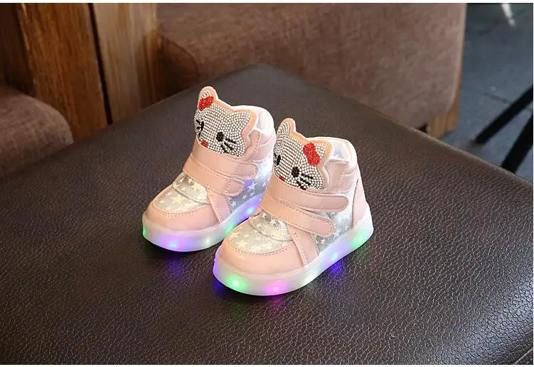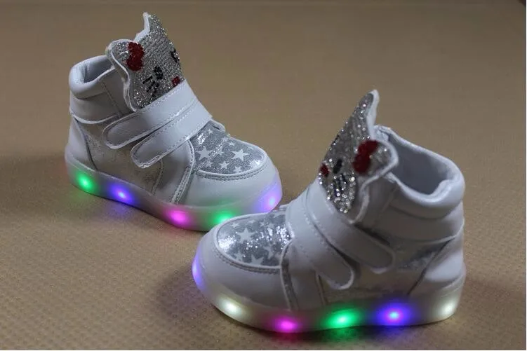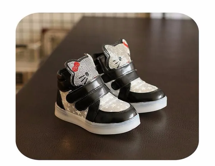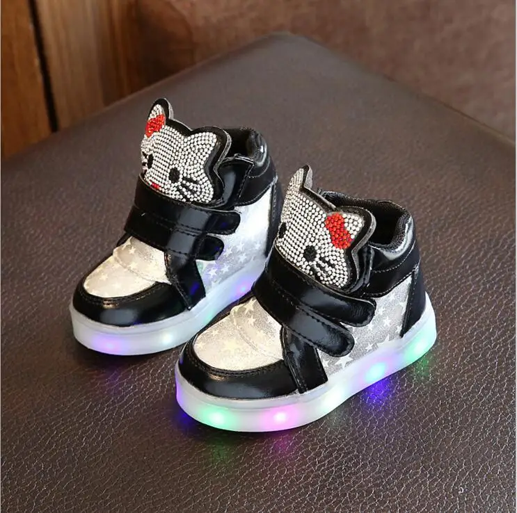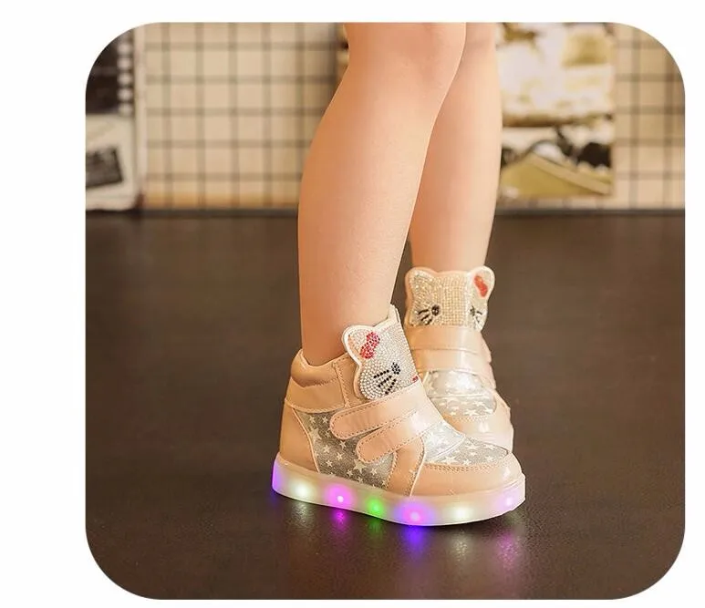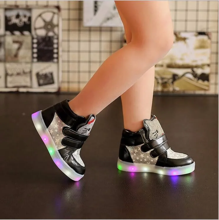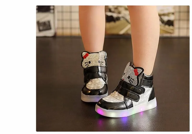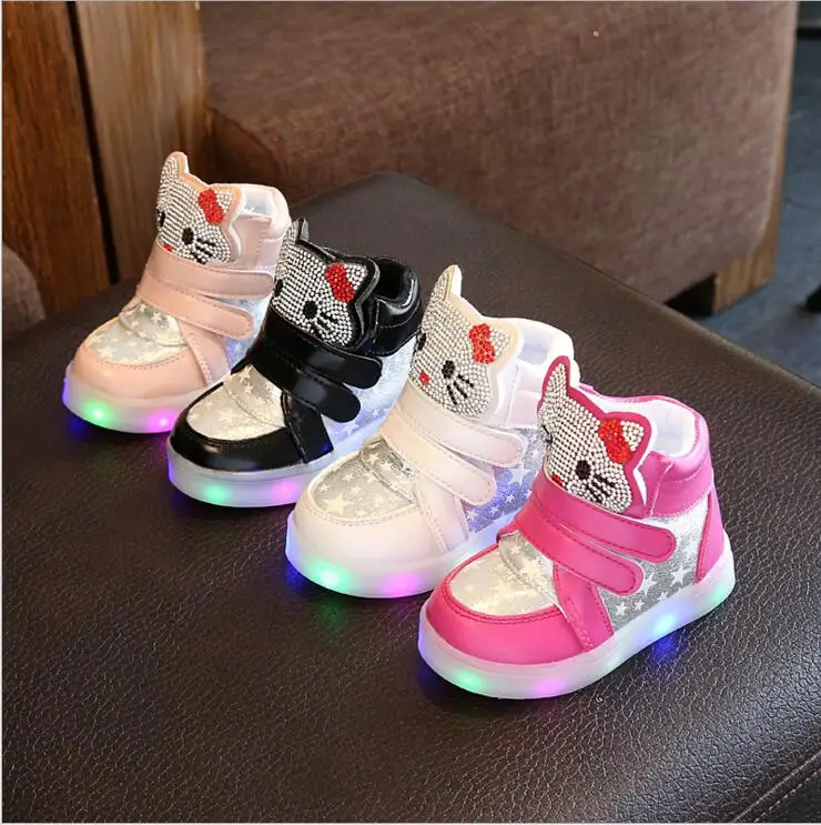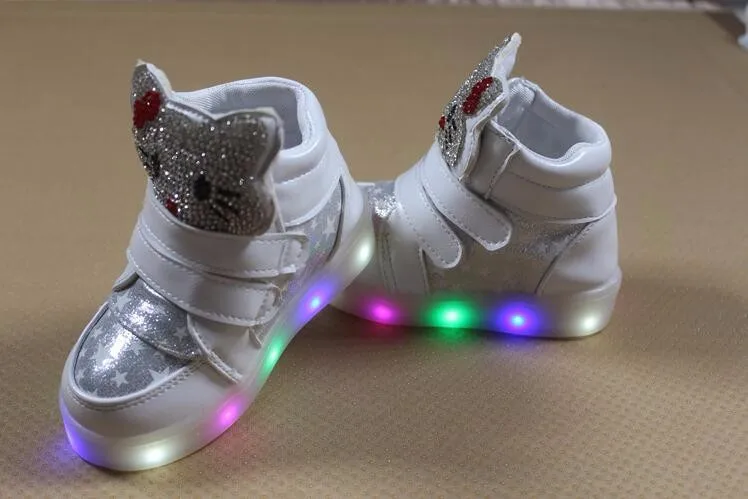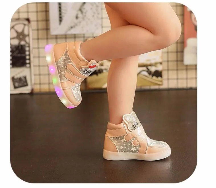 Children cartoon KT casual shoes new network hollow breathable sports shoes girls flashing LED fashion glowing sneakers 21-30
