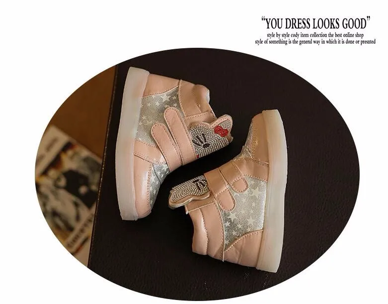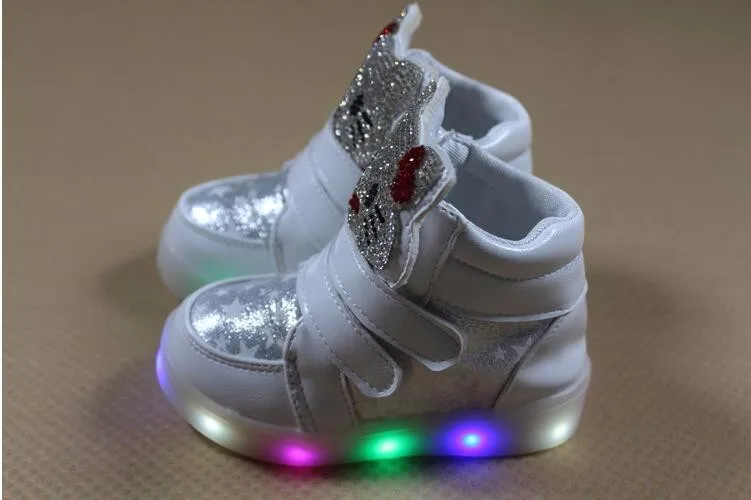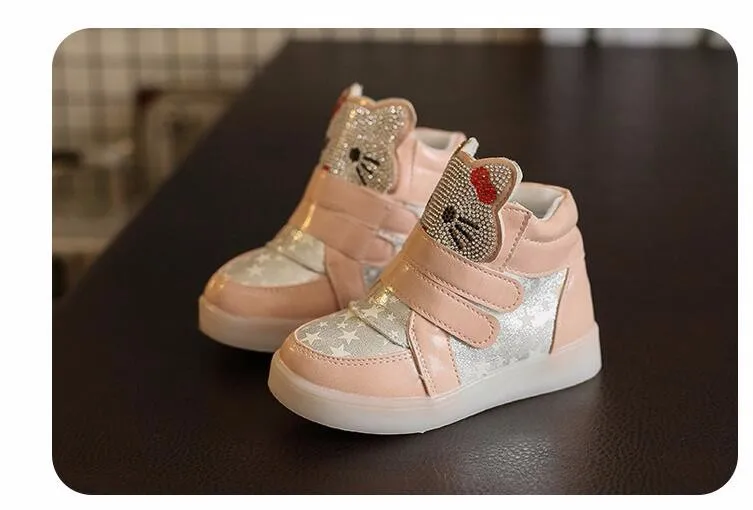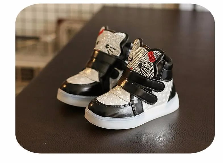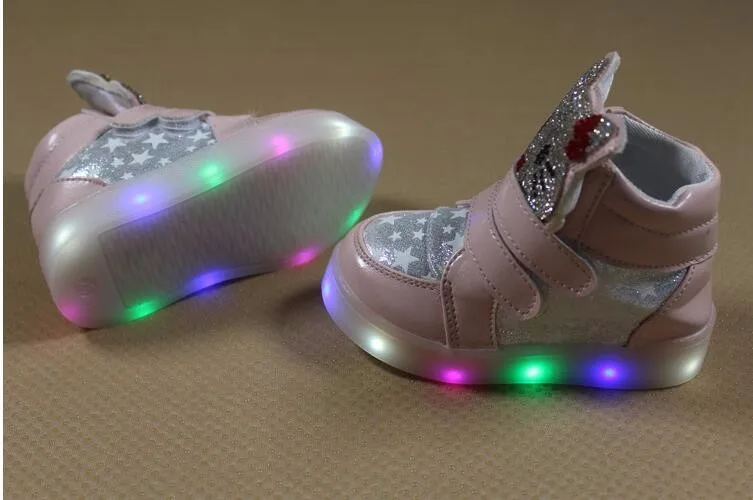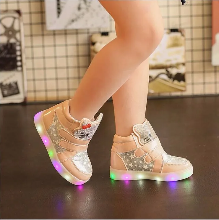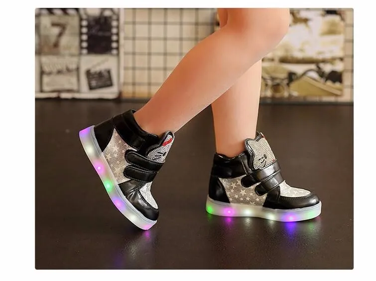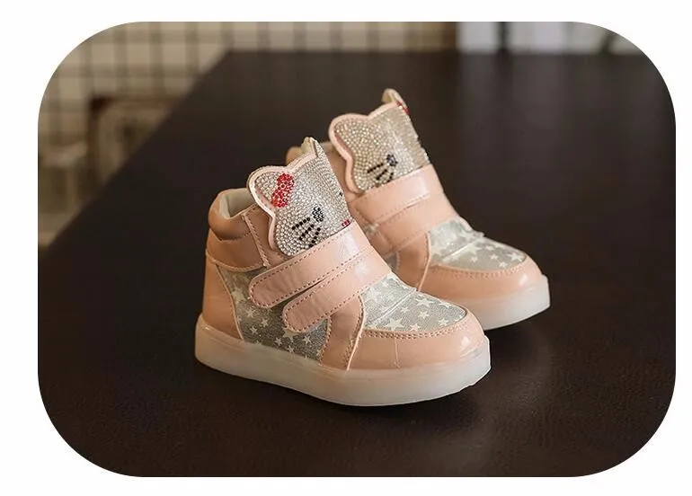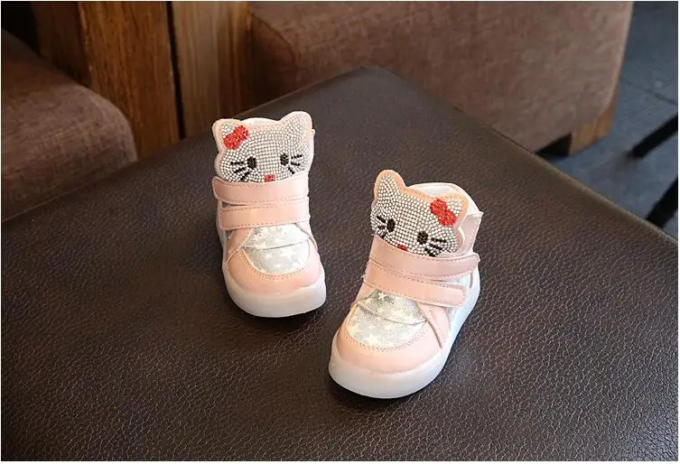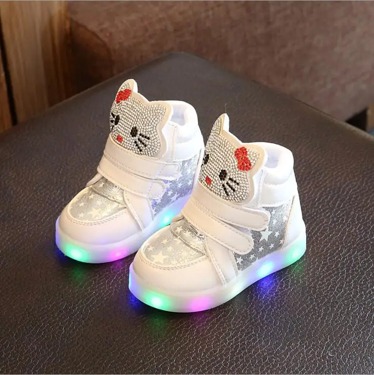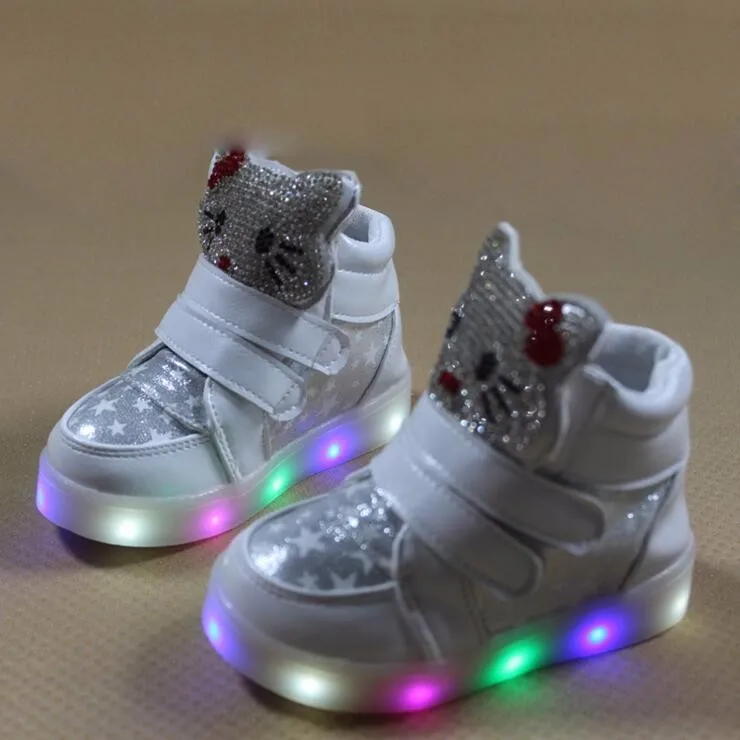 Children cartoon KT casual shoes new network hollow breathable sports shoes girls flashing LED fashion glowing sneakers 21-30