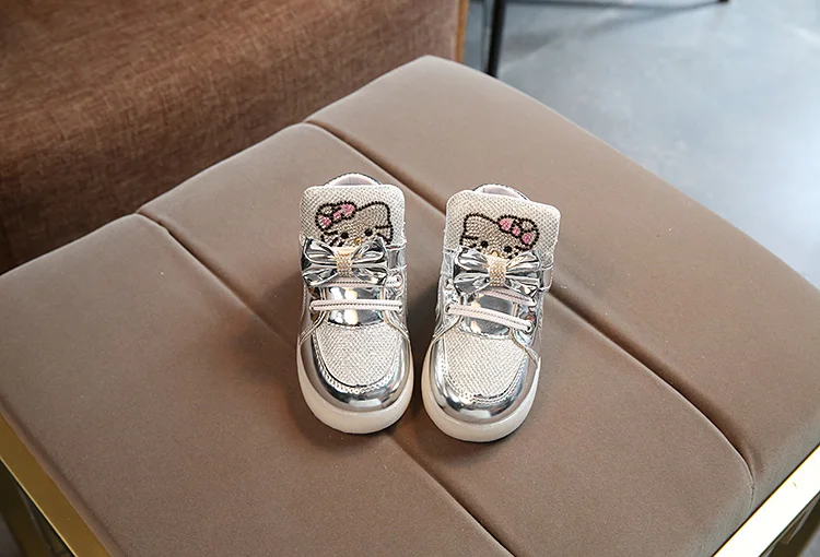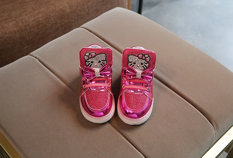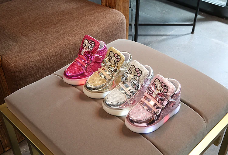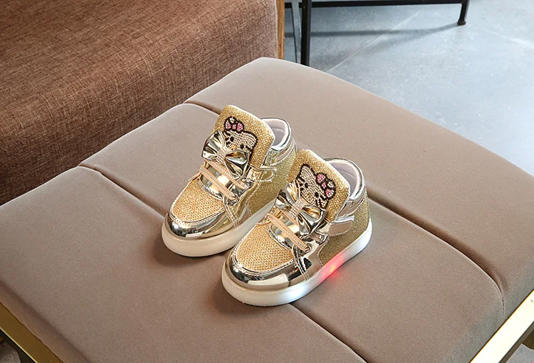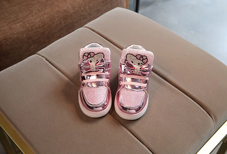 Children Light Up Sneakers Cartoon Kitty New Autumn Kids LED Luminous Shoes for Girls Colorful Flashing Lights Sneakers