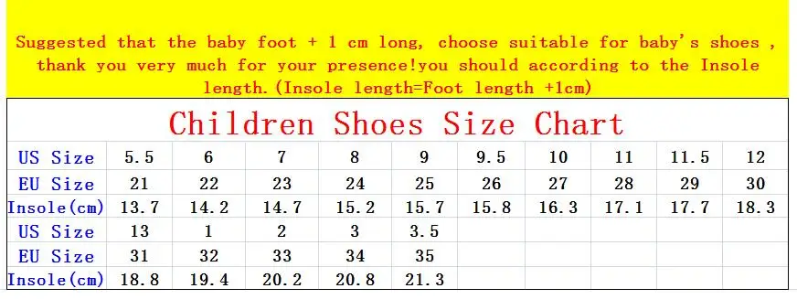 Dear friends, When you order the children’s shoes, you should according to the Insole length.(Insole length=Foot length +1cm) The US size is Not Standard ,Just convenient for you to do order. The comfortable length is the foot length add about … Read More