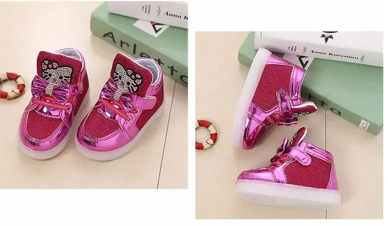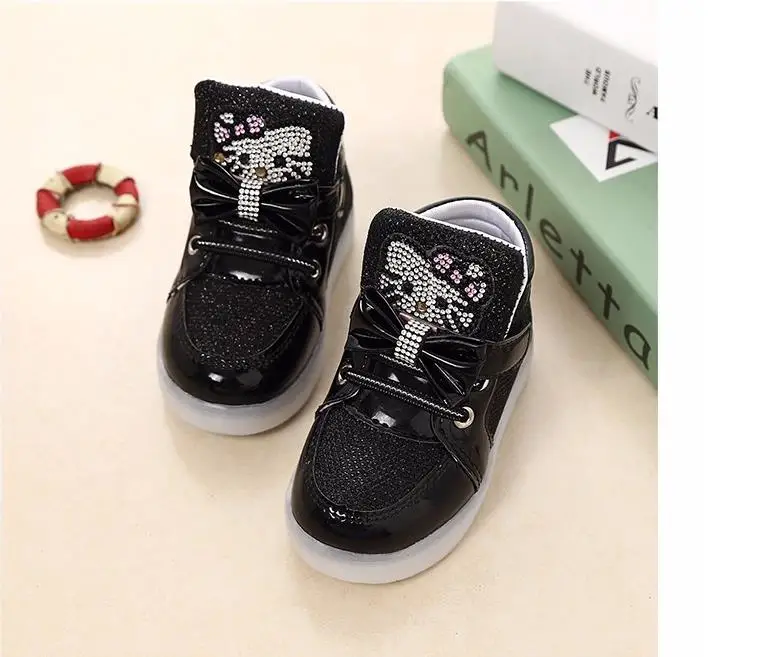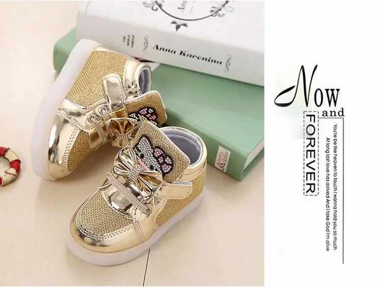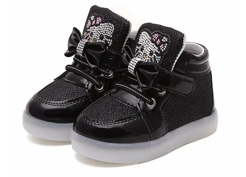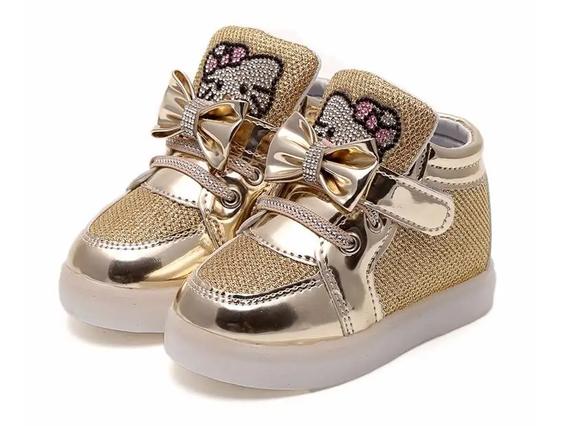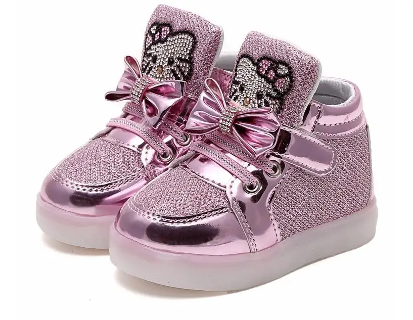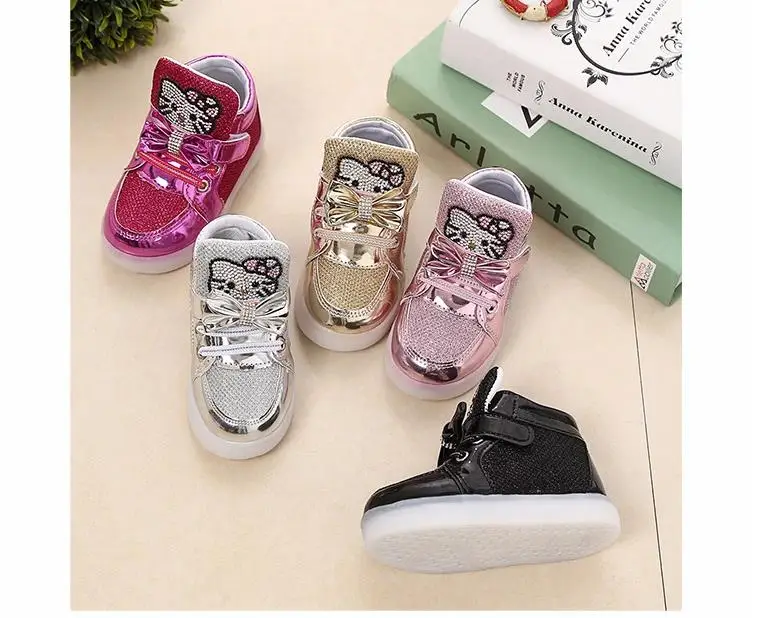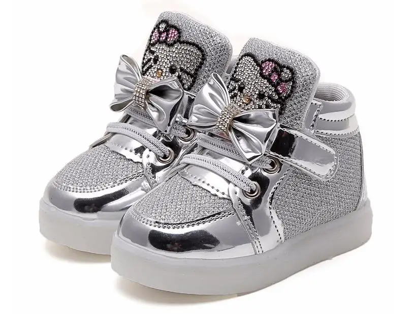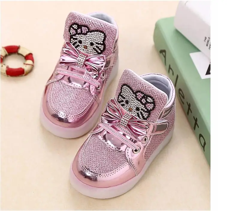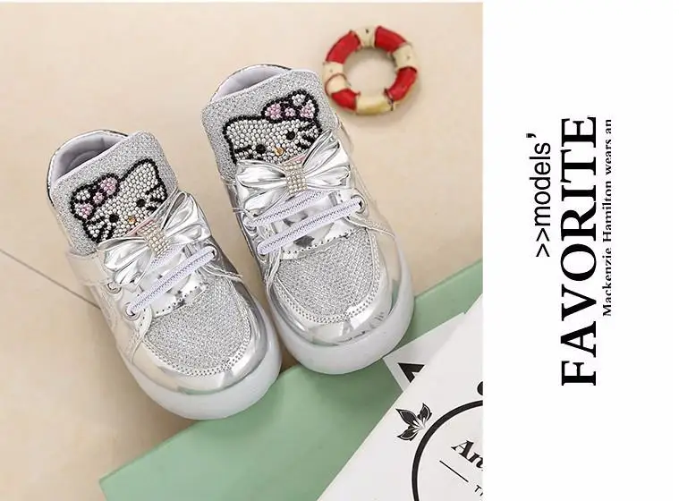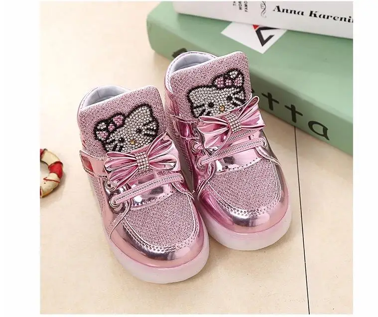 Children Shoes 2017 New Spring Hello Kitty Rhinestone Led Shoes Girls Princess Cute Shoes With Light EU 21-30