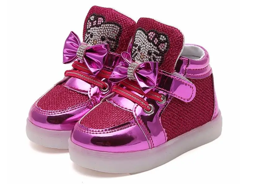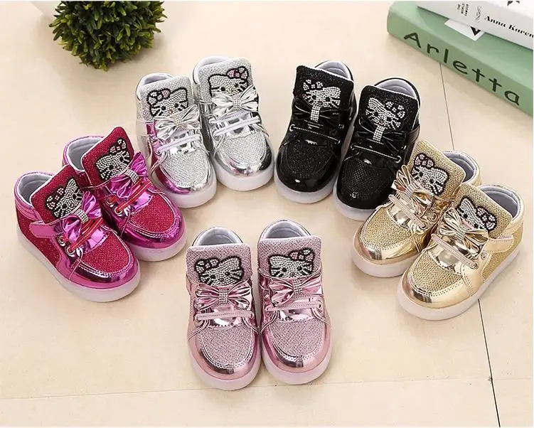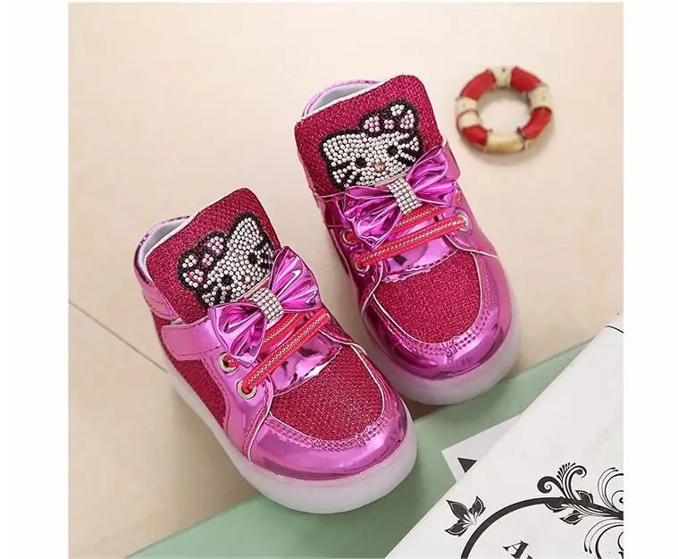 Home » » Shoes » Children's Shoes » Girls » Children Shoes 2017 New Spring Hello Kitty Rhinestone Led Shoes Girls Princess Cute Shoes With Light EU 21-30