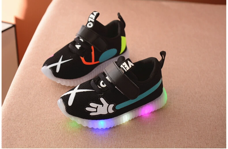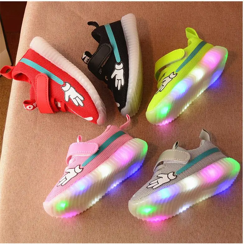 Children Shoes With Light Led Girls Sneakers Autumn Cartoon Fashion Lighted Girls Mickey Shoes Luminous Sport Shoes For Girls