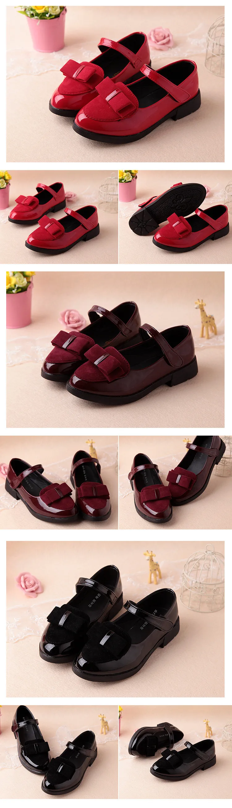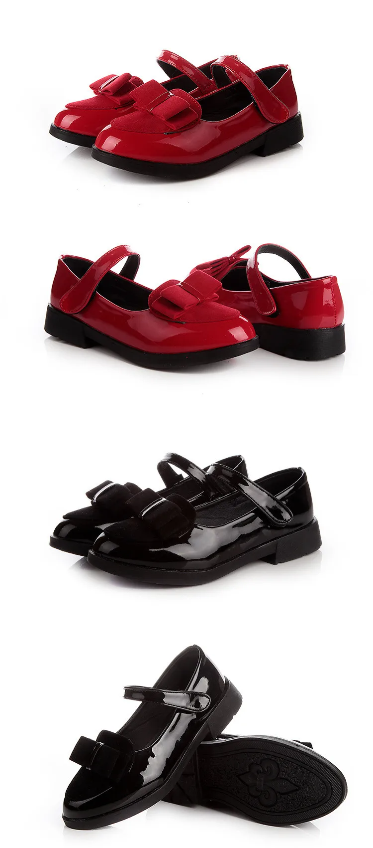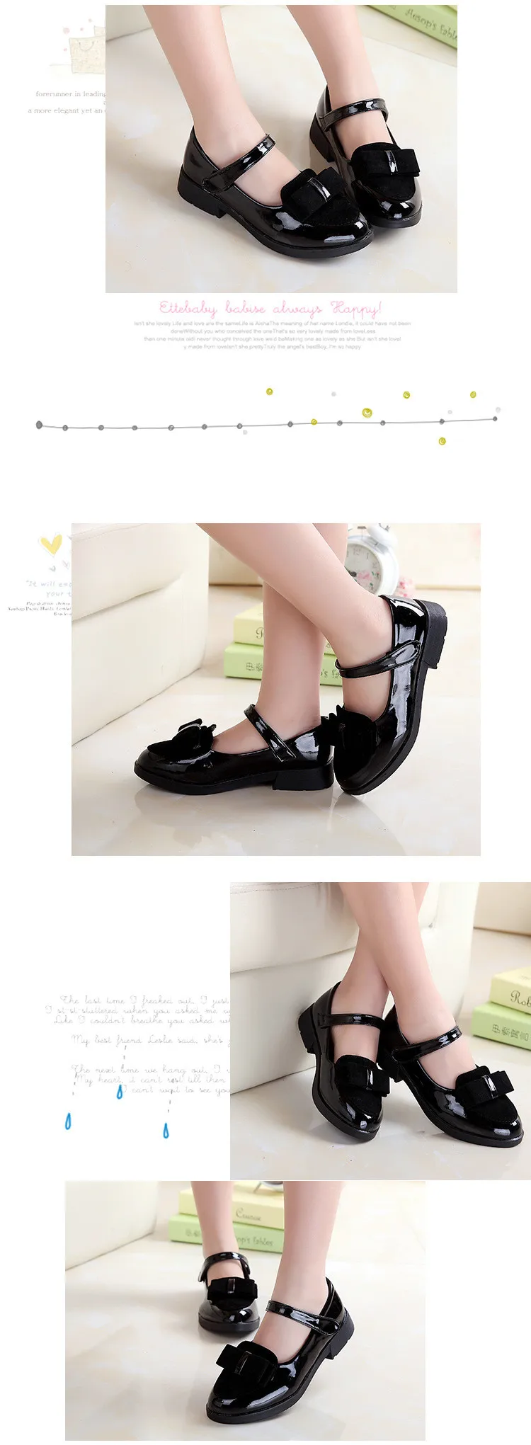 Female child princess leather 2017 spring child leather Bow-tie PU Leather Children Shoes Euro Size 27-37 Kids Loafers Girls