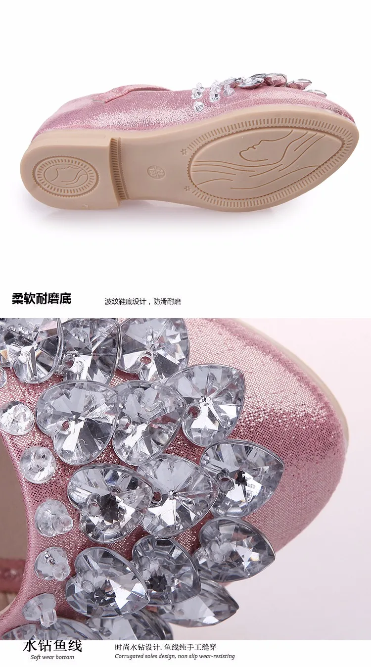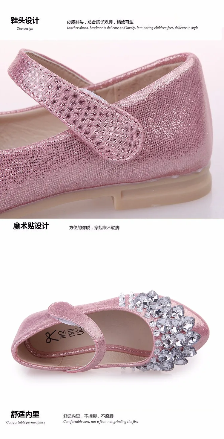 Girl Dress Shoes 2016 Autumn New Fashion Rhinestone Girl Party Dress Solid Pretty Round Kids Shoes 9073W