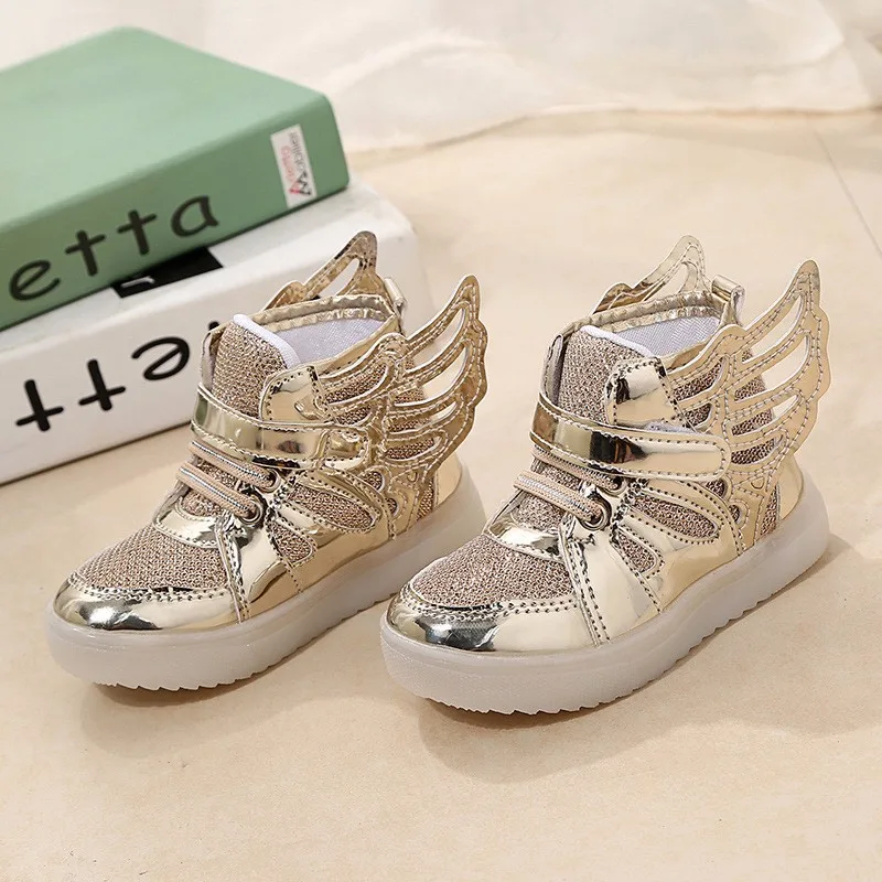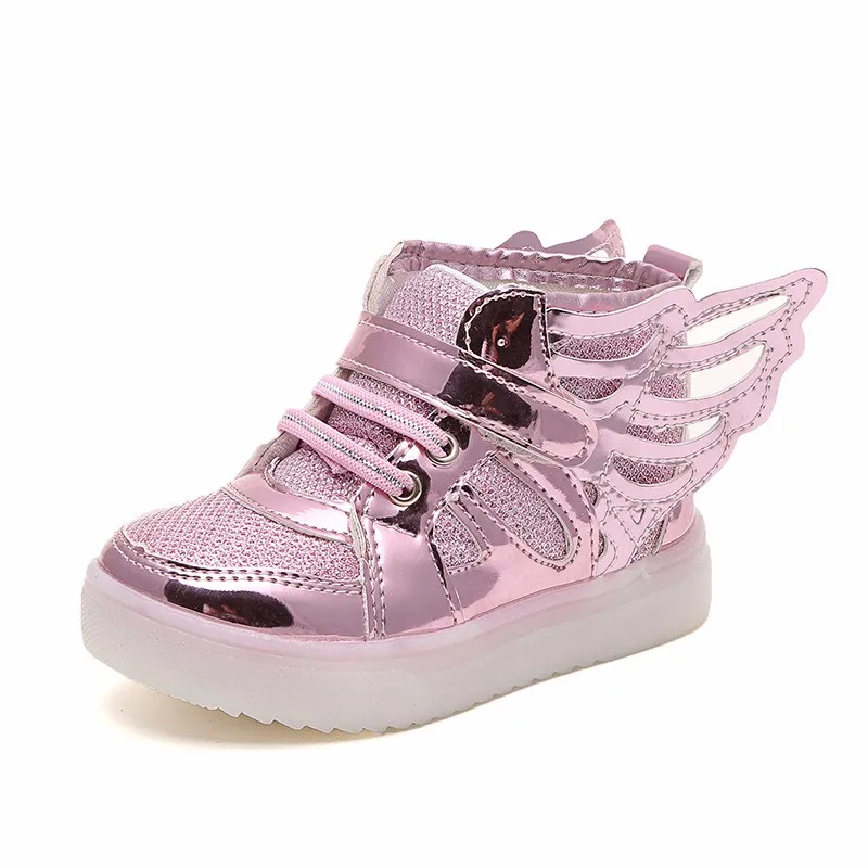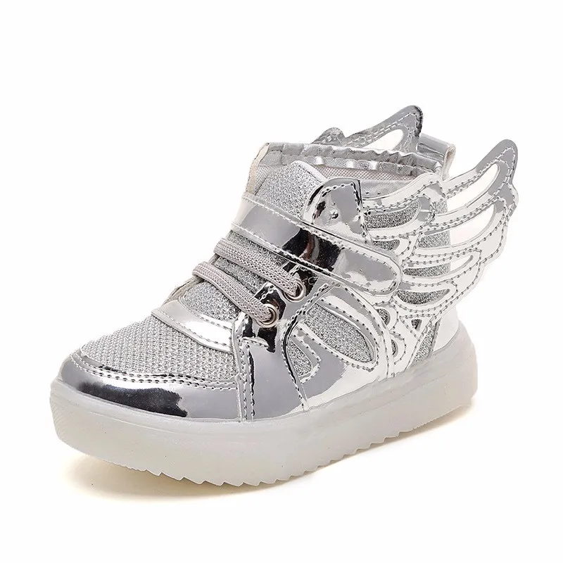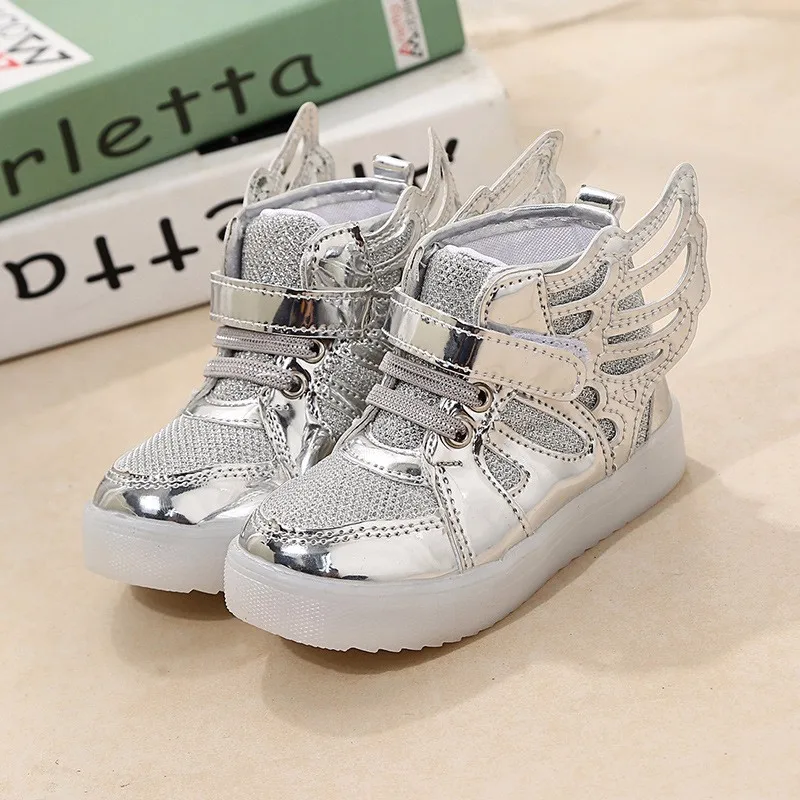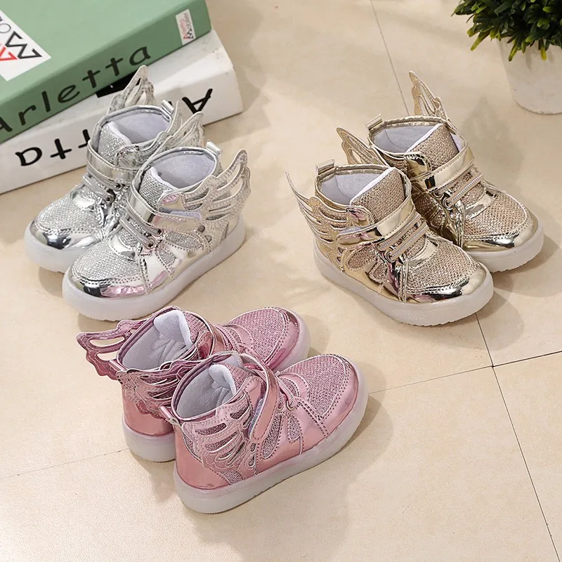 Baby Girls boys sequin LED Light Shoes Toddler Anti-Slip Sports Boots Kids Sneakers Children Cartoon Sequins PU Flats size 21-30