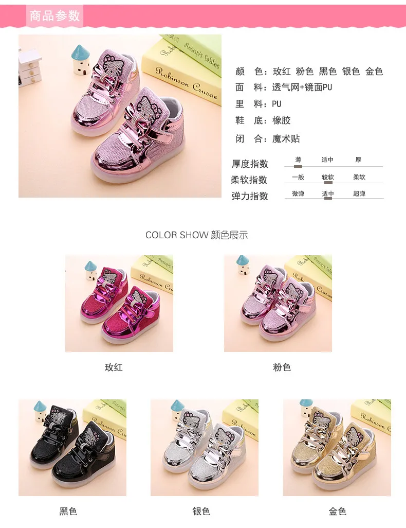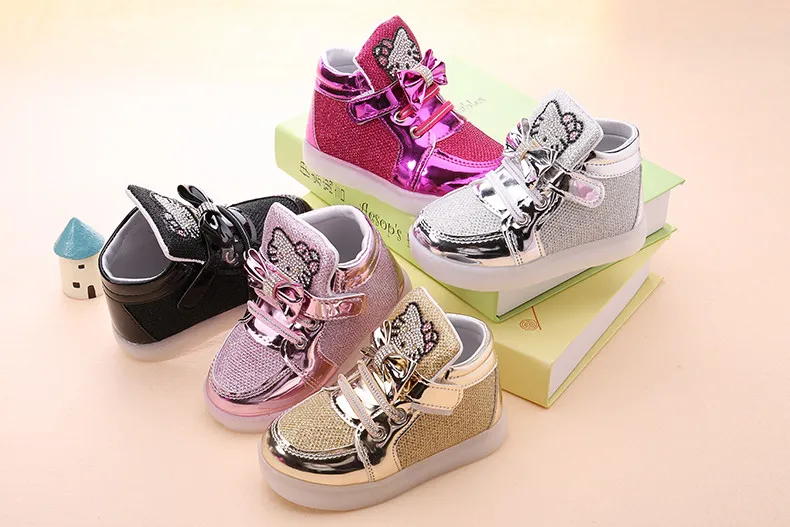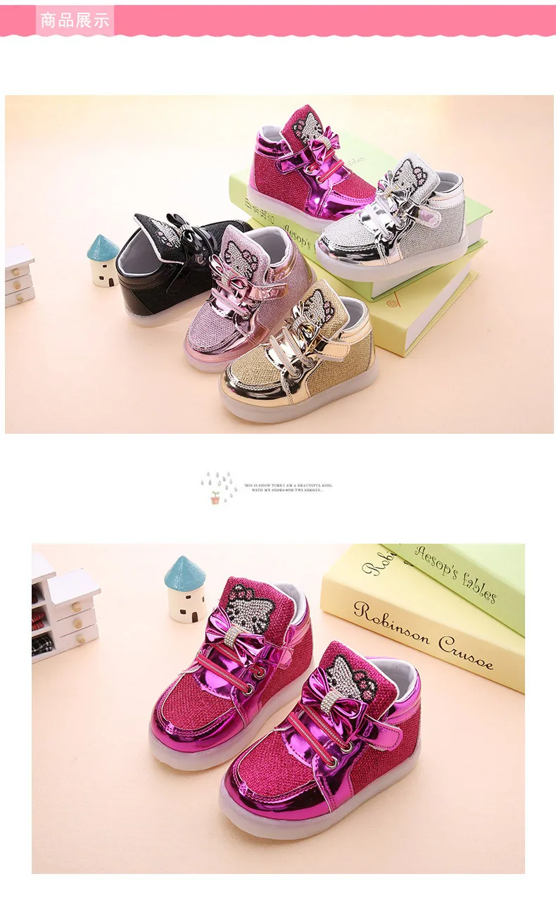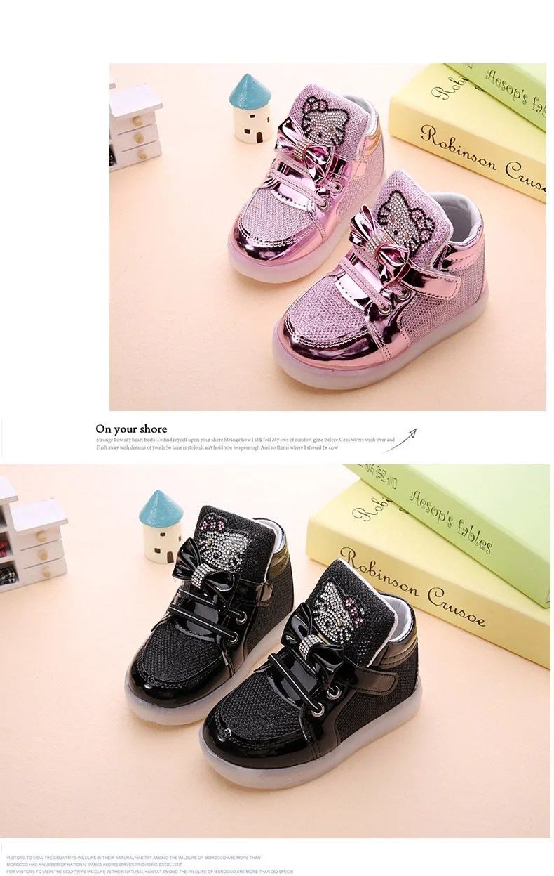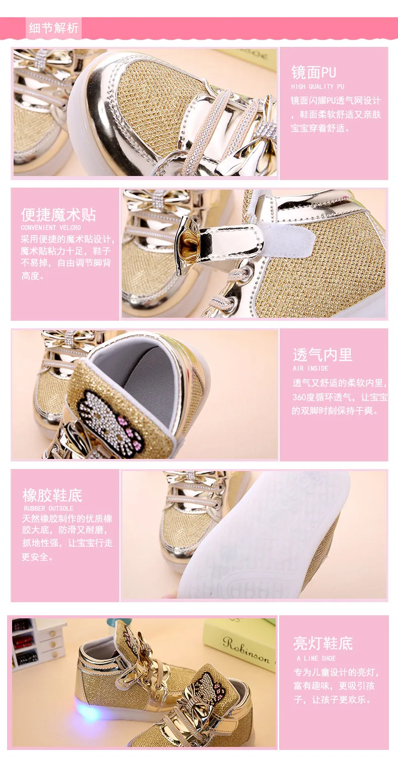 Girls shoes baby Fashion Hook Loop led shoes kids light up glowing sneakers little Girls princess children shoes with light eu 21-30 free shipping