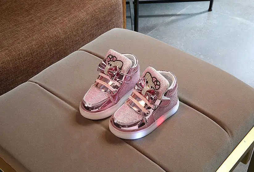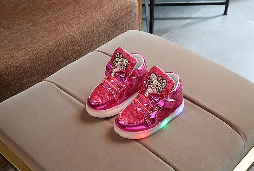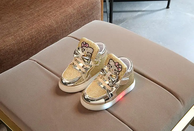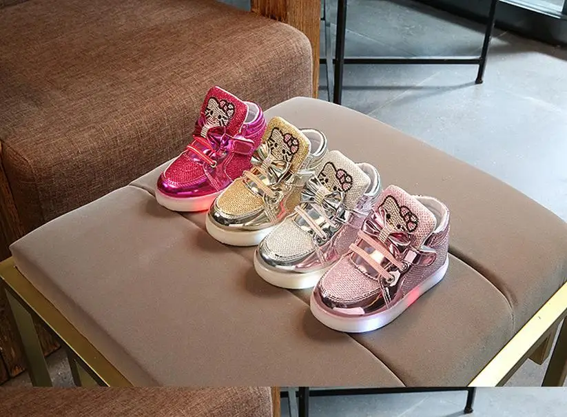 HaoChengJiaDe New Spring Autumn Winter Children’s Sneakers Kids Shoe Chaussure Enfant Hello Kitty Girls Flat Shoe With LED Light