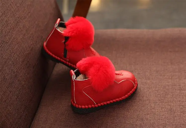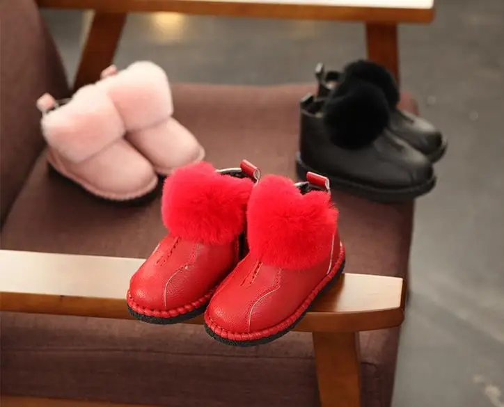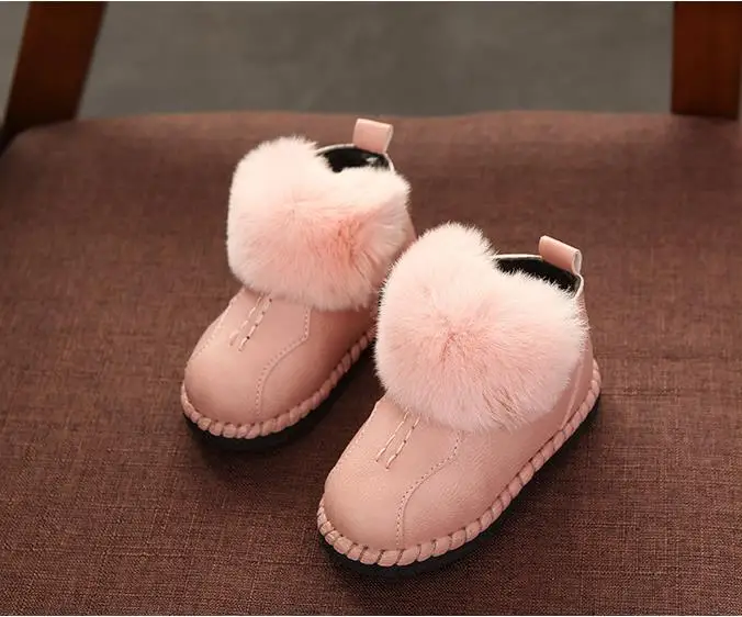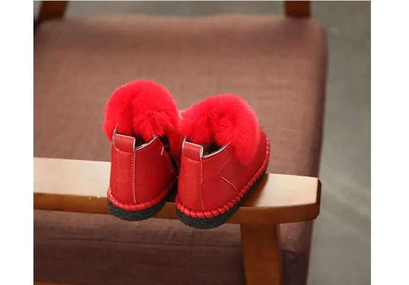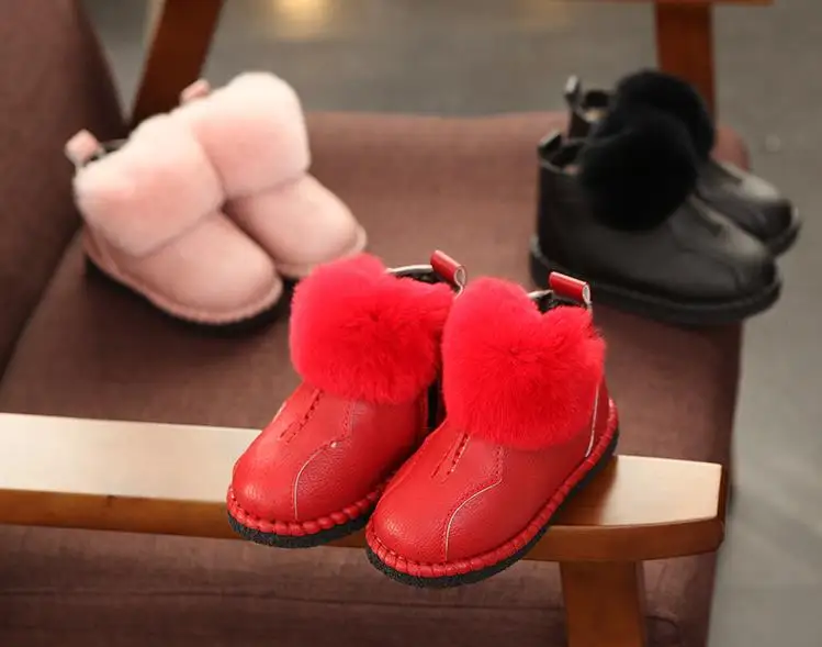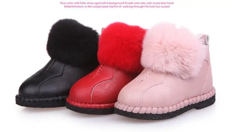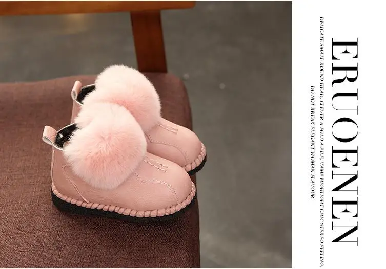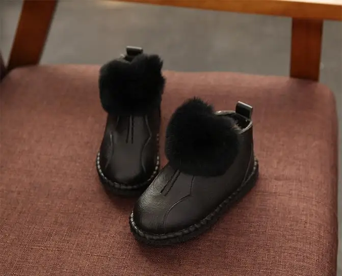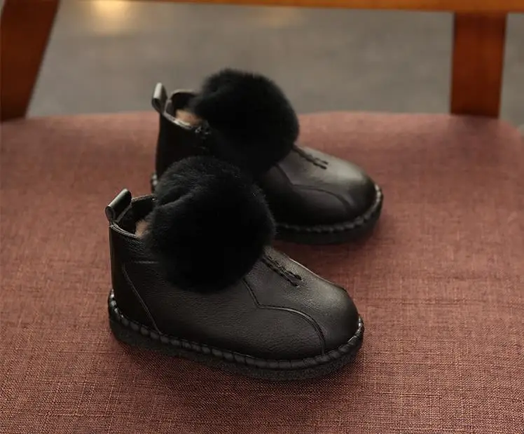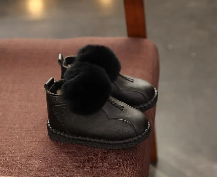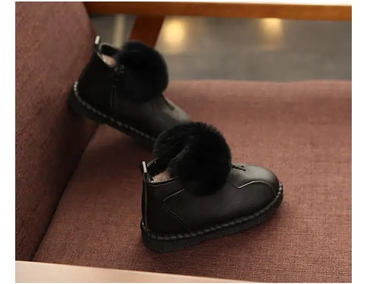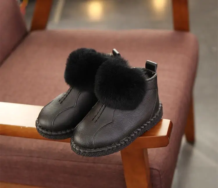HaoChengJiaDe Winter Rubber Girls Boots New Fashion Warm Children Shoes Girls Leather Plush Platform Flat Sneakers Kids Boots