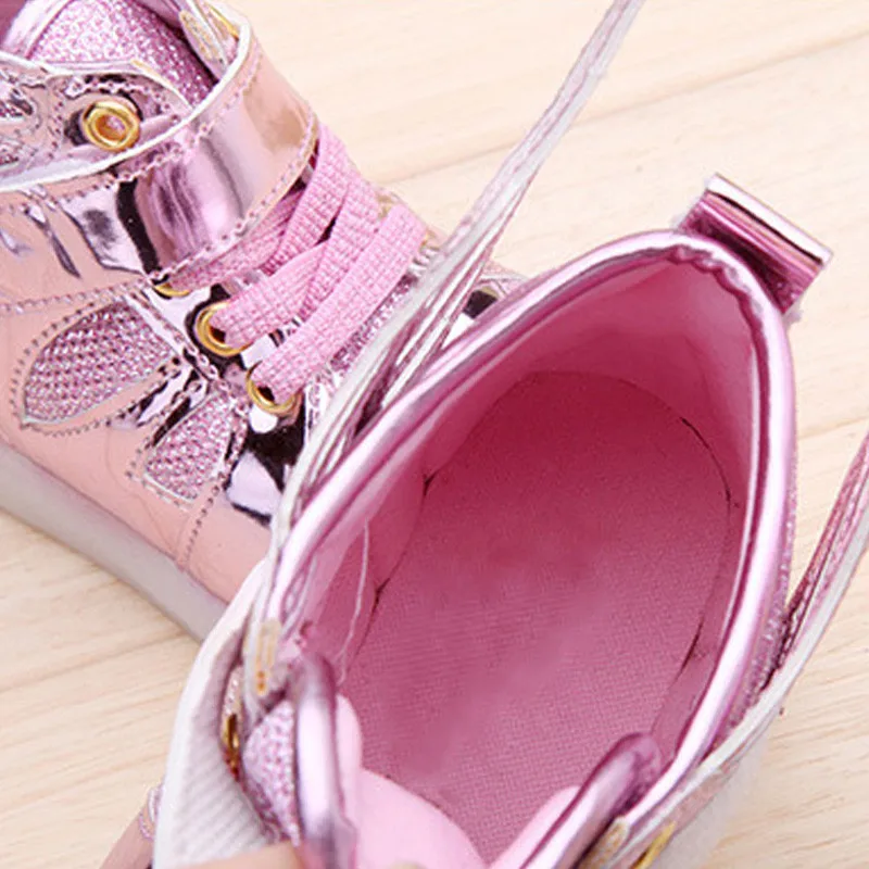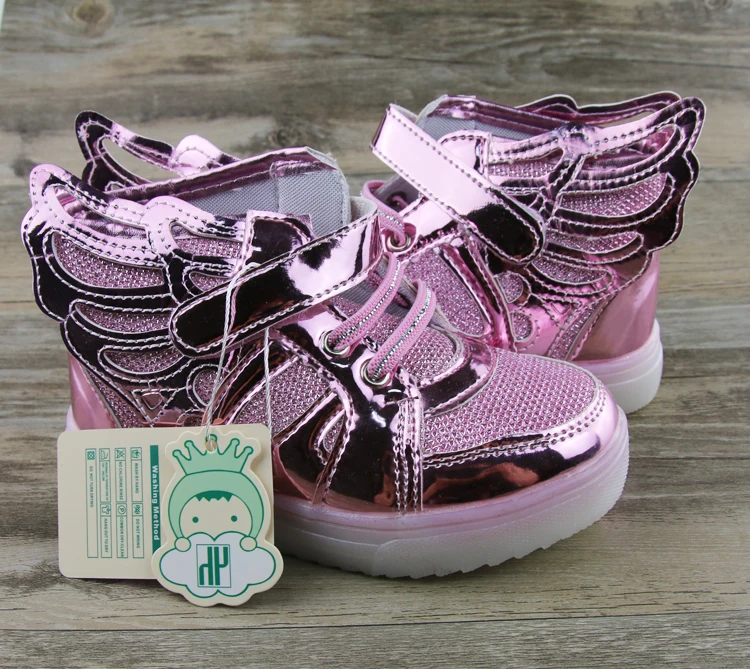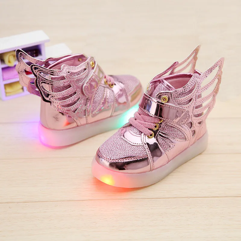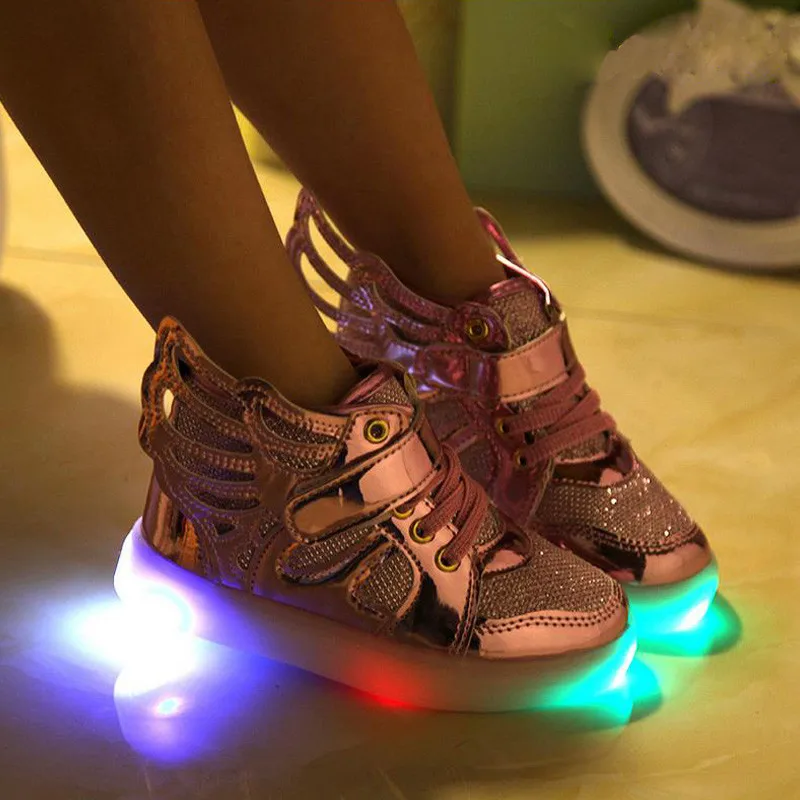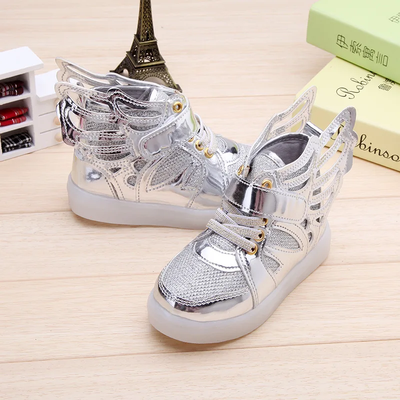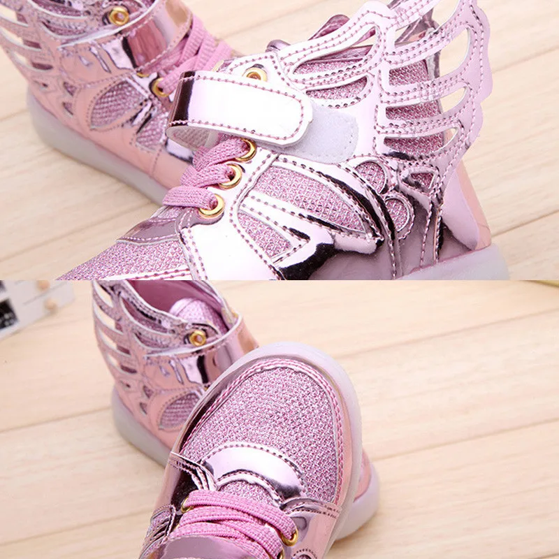 Product name:Children shoes with light 2016 Fashion glowing sneakers boys little girls shoes wings canvas flats spring kids light up shoes