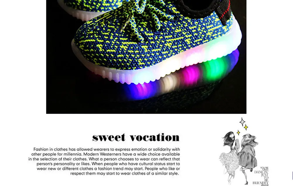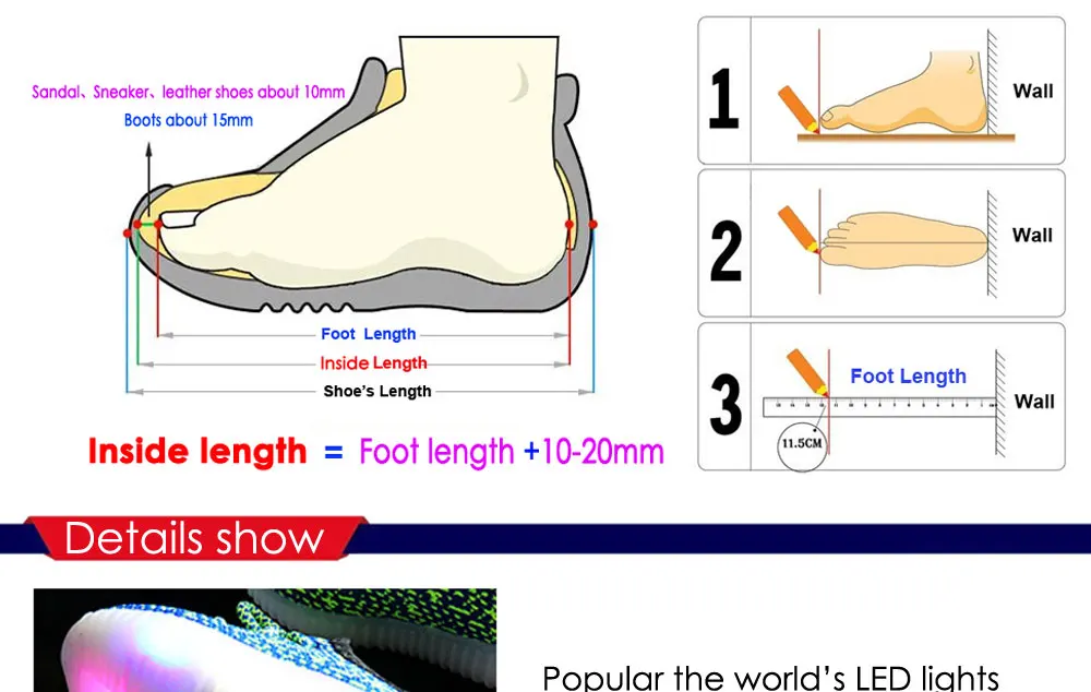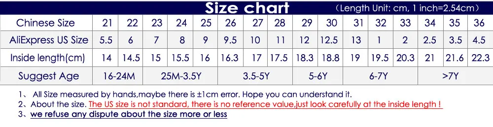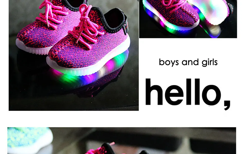 Kids girl luminous sneakers Shoes Spring fashion casual Shoes Suitable for 0-11 years kid NOTES : 1: Please forget US or EUR Size, because all size are not standard,Just read the shoes inside length carefully, First measure kid foot length, Then choose right US Size.Suggest choose bigger than kid’s foot 10mm,