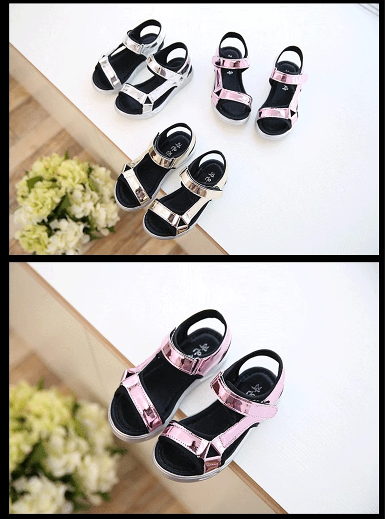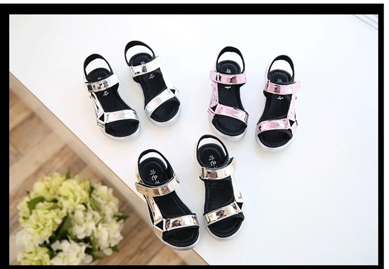 Hot Sale New Fashion Children Sandals Kids Girls Sequin Sandals Summer Boys Girl Pink Gold Silver Sandals Shoes Size 27-37