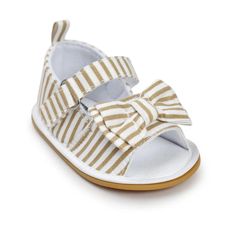 Home » » Shoes » Children's Shoes » Girls » Hot sale New Stripe Bowtie Cute Baby moccasins child Summer girls sandals Sneakers First walkers Infant Fabric shoes 0-18 M