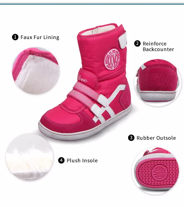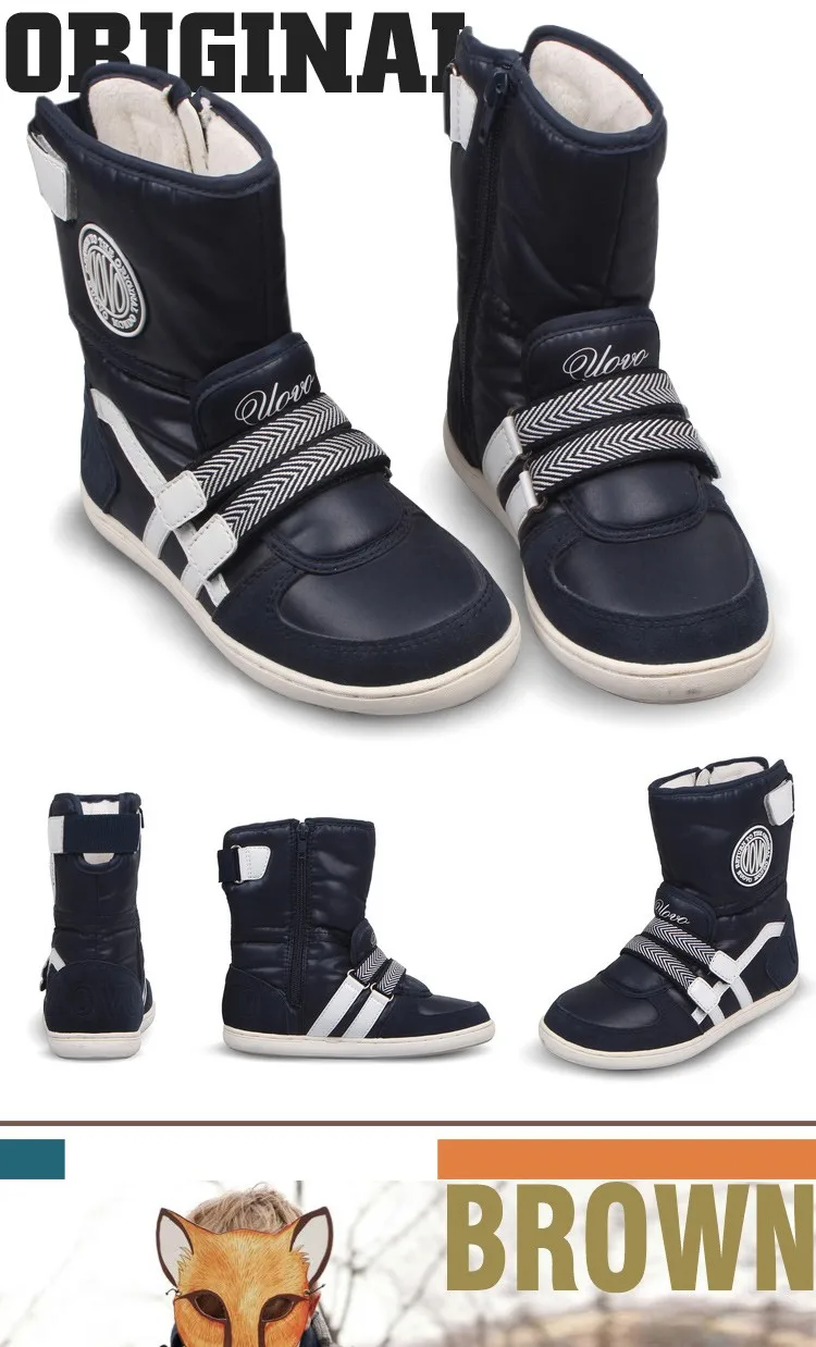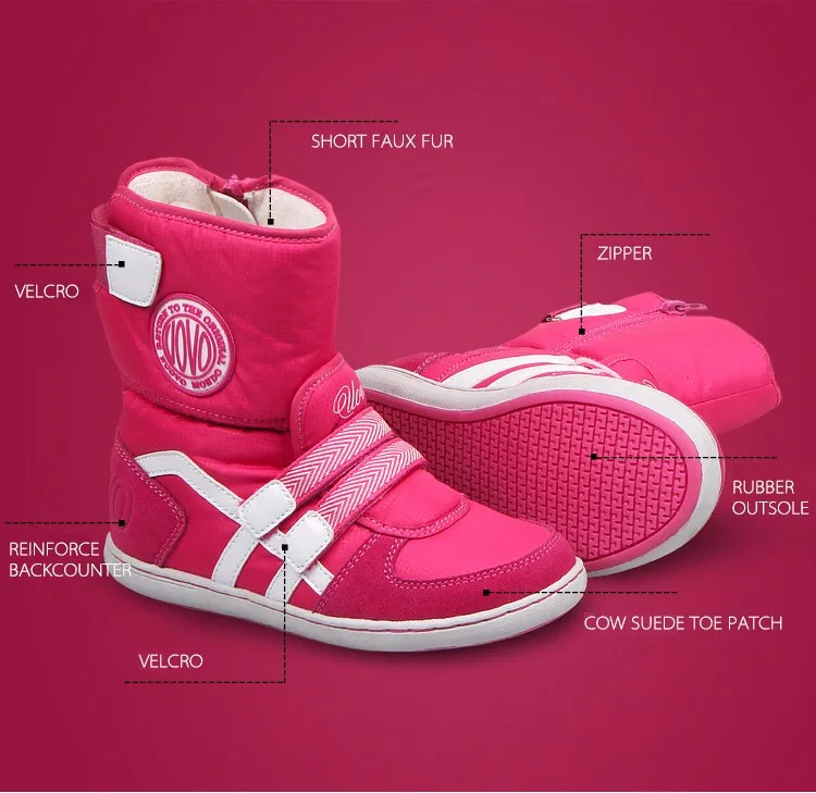 Feature: 1.Fabric&suede 2.Skidding-proof rubber outsole 3.Fashion sport boots featuring two geomatric fabric straps with hoop-and-loop, decorative round rubber logo 4.Adjustable fabric strap with hoop-and-loop closure for easy on and off.
