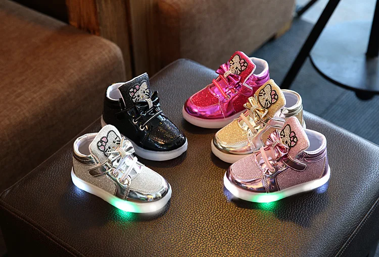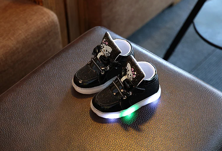 Kids Casual Lighted Shoes 2017 New Brand Girls Glowing Sneakers Children KT Cats Shoes With Led Light for Baby Girl Lovely Boots