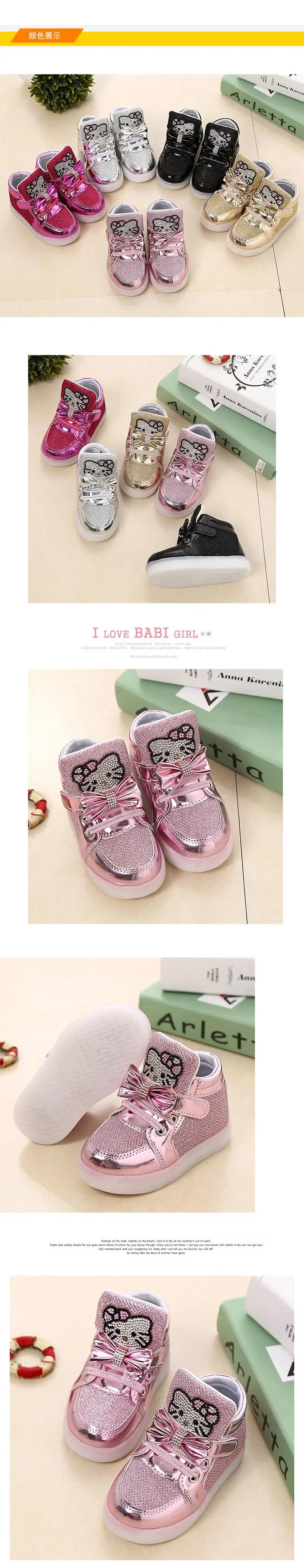 Kids Girls Shoes Spring Autumn Winter Children’s Sneakers Boy Shoes Chaussure Enfant Hello Kitty Baby Shoes With LED Light