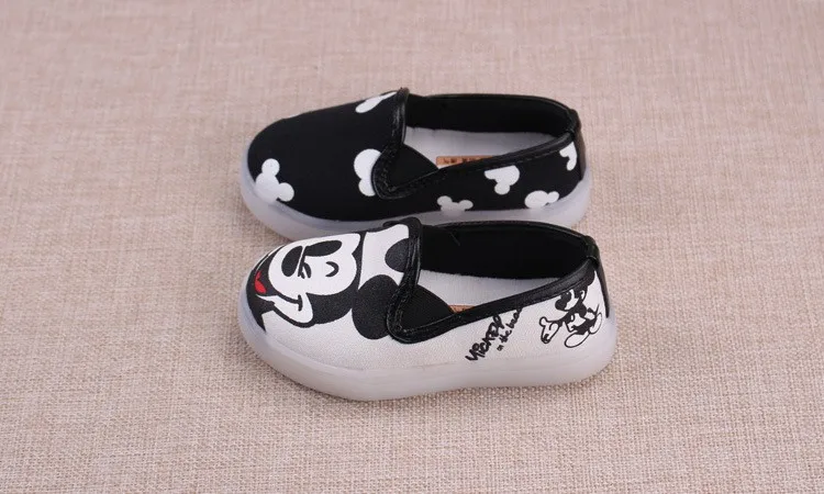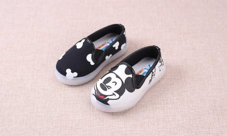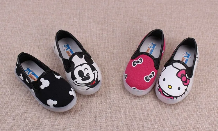 kids LED Sneakers Boys Mickey Shoes 2016 New Autumn Children canvas shoe KT Cats cartoon baby girls sneaker with light
