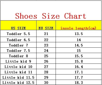 kids LED Luminous shoes Boys Mickey 2016 New Autumn child canvas shoe hello kitty cartoon baby girls sneakers with light Feature: Color:Black,Red Size:21~30 Insole Length:13.5~18.3cm Dear friends: Because all children shoes size is difference,When you order the children’s shoes,you should according to Our size and internal length. According to the Insole length.(Insole length=Foot length +1cm) The US size is Not Standard ,Just convenient for you to do order. The comfortable length is the foot length add about 1cm. And Because of the long time delivery time by China Post Air Mail and child will grow up fast please choose more bigger size shoes for your child. Please choose the right size. All shoes will be shipped with bubble bags,no boxes !!!