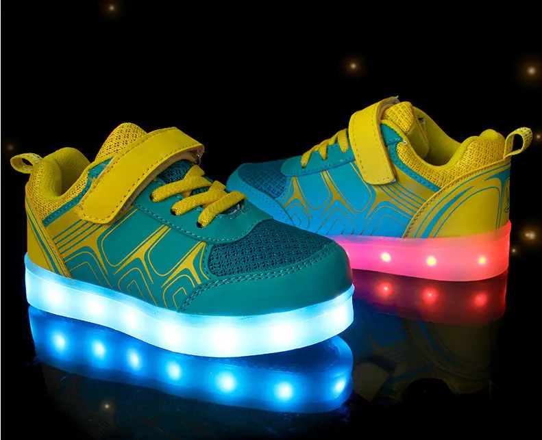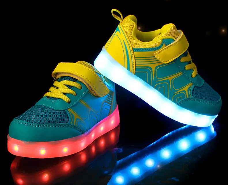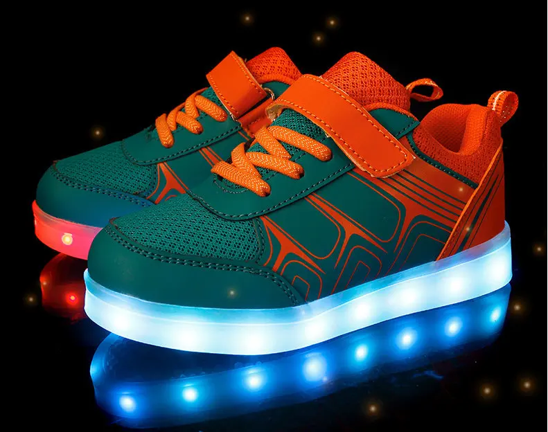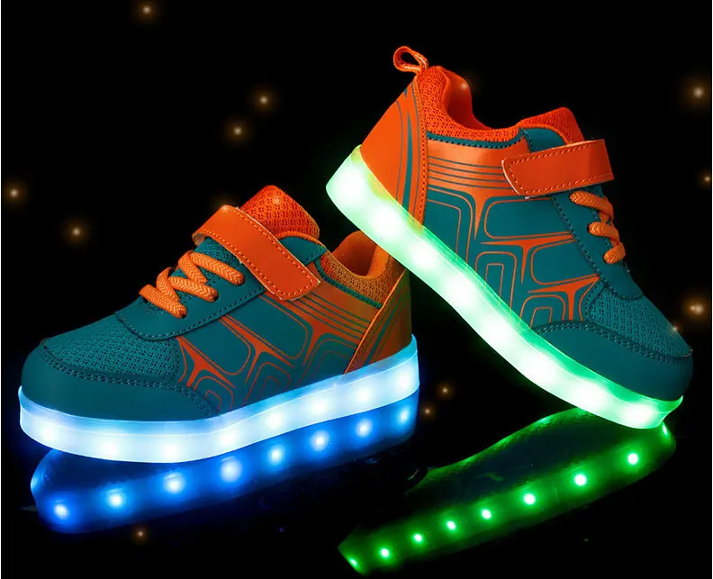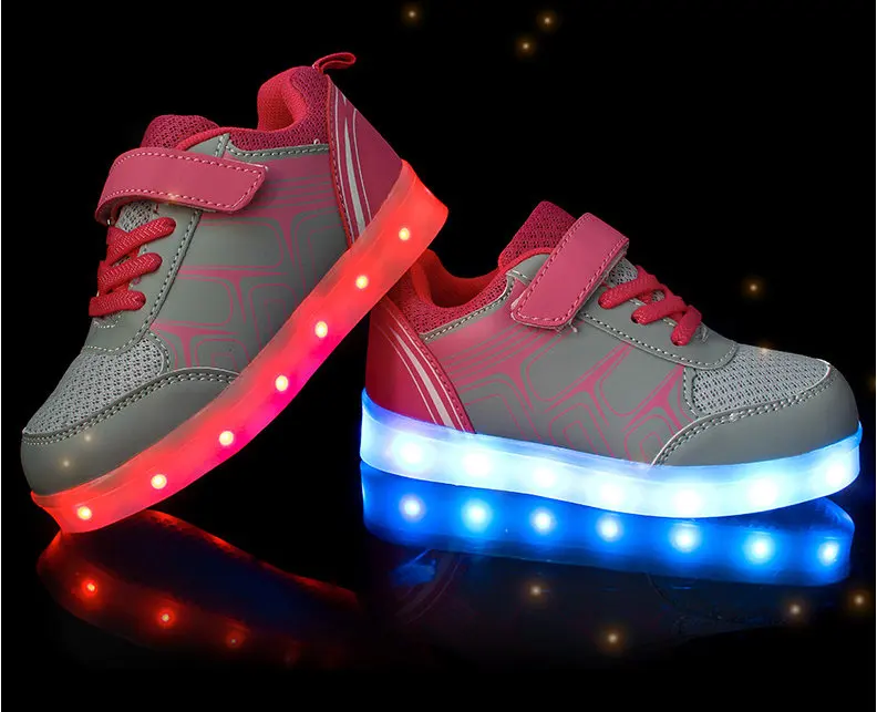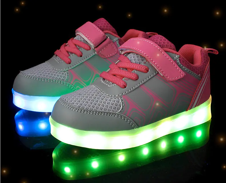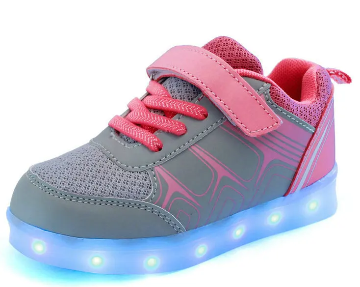 Kids Luminous Sneakers 2017 New Spring Breathable Sports Shoes Boys Girls USB Charger Led Light Shoes for children size 25~37