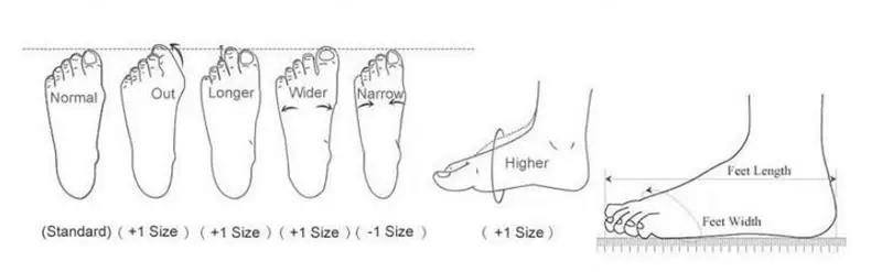4.If your instep and your foot type are bigger than ordinary, you’d better choose a larger size. Otherwise, you should choose a small one.