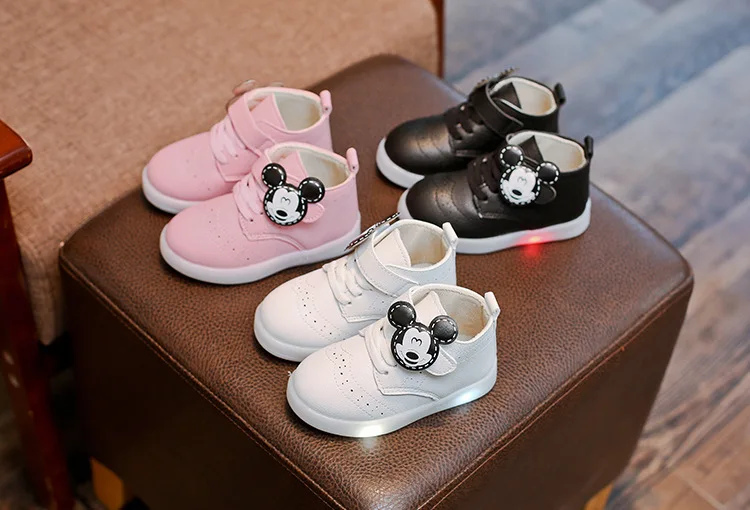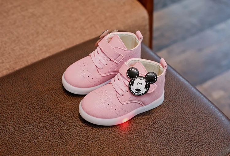 Kids Shoes With Light Led Girls Sneakers Autumn Winter Cartoon Light Boys Boots Mickey Shoes Sport Glowing Chaussure Led Enfant
