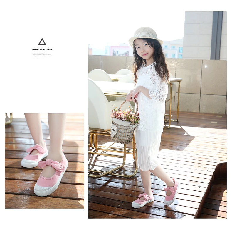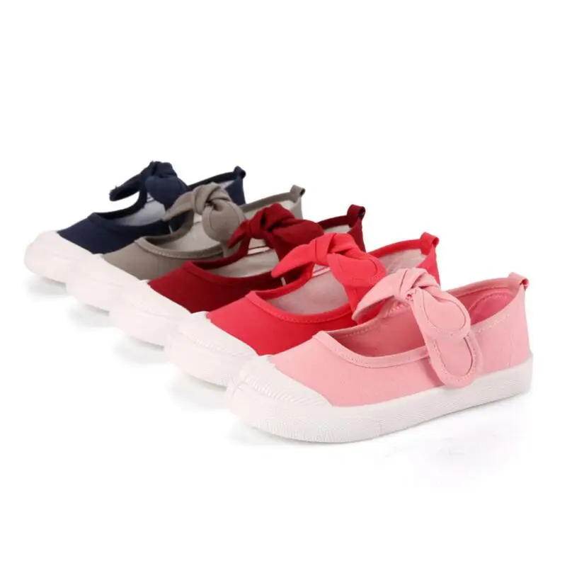 Baby Girl Shoes Canvas Casual Kids Shoes With Bowtie Bow-knot Solid Candy Color Girls Sneakers Children Soft Shoes