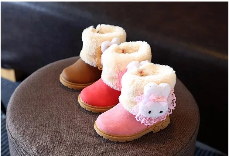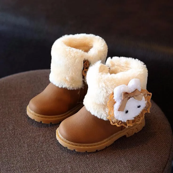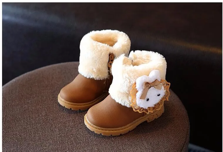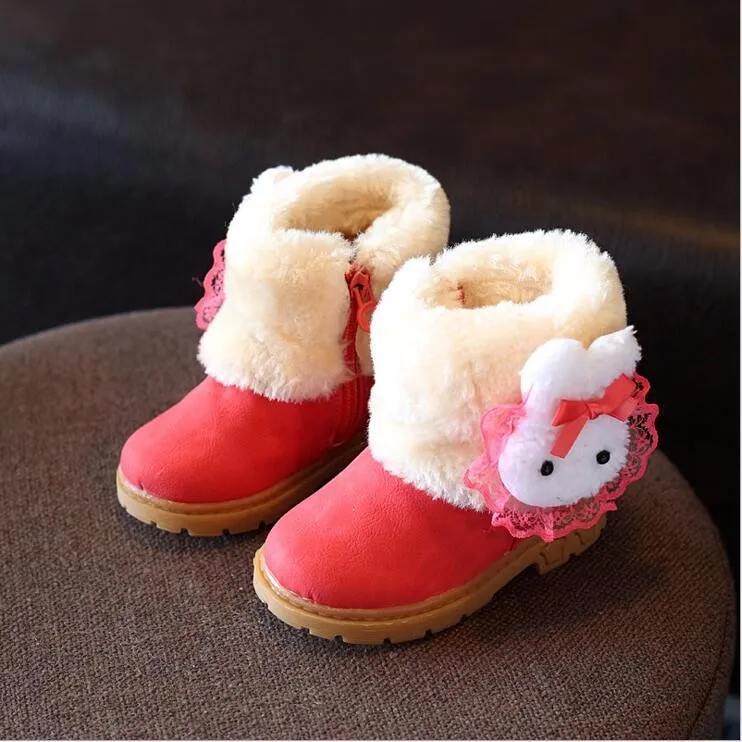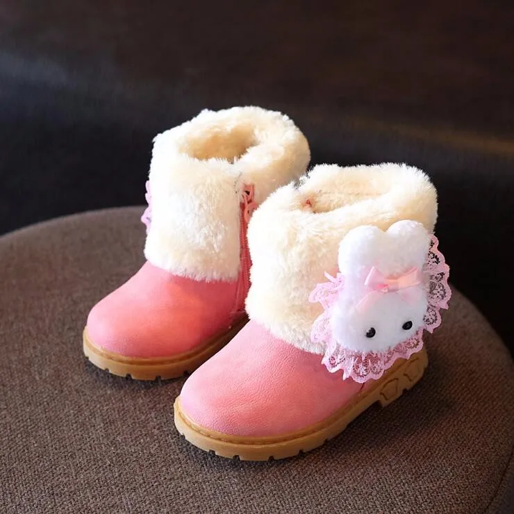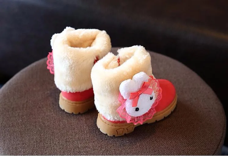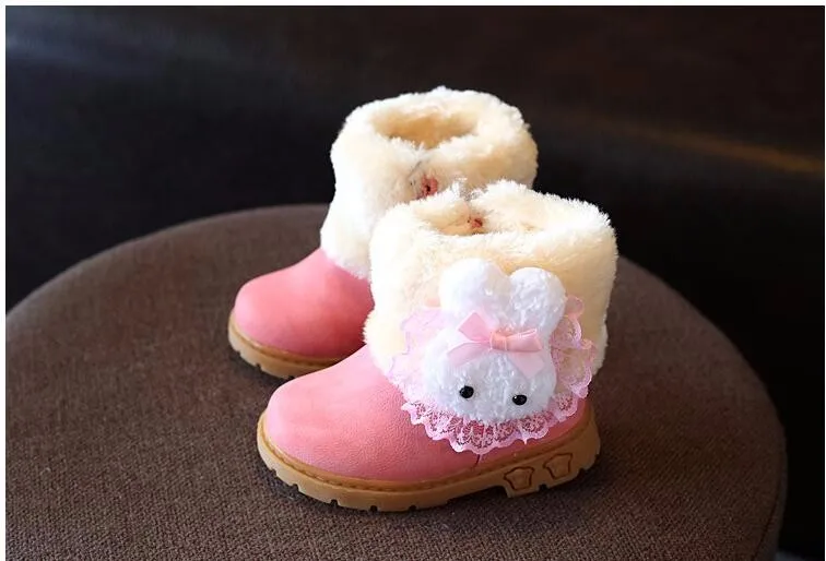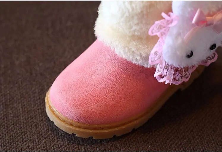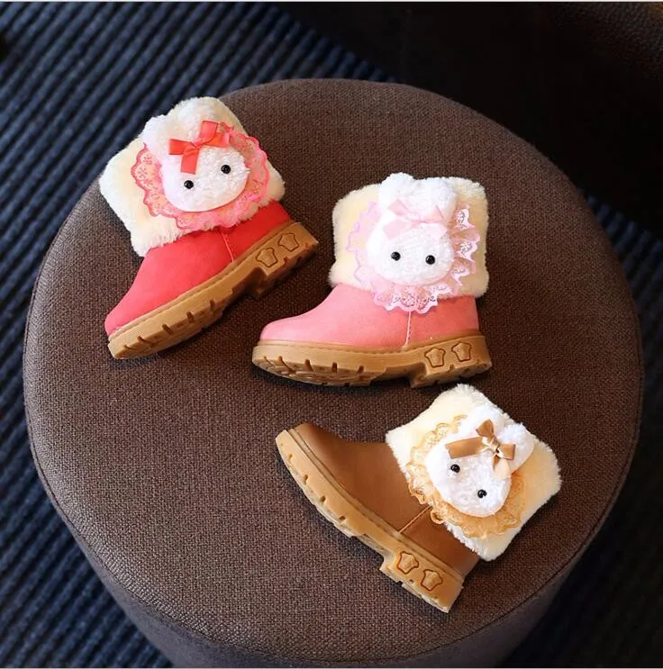 Princess Girls Boots Children Shoes New Winter Plush Warm Bow Fashion Girl Snow Boots Kids Soft Bow Cute Girls Shoes