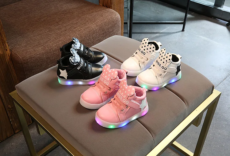 KKABBYII Girls LED lighted Sneakers Autumn Children Cartoon Boots For Girls Boys Kids Casual Shiny Stars Soft Shoes EU 21-30