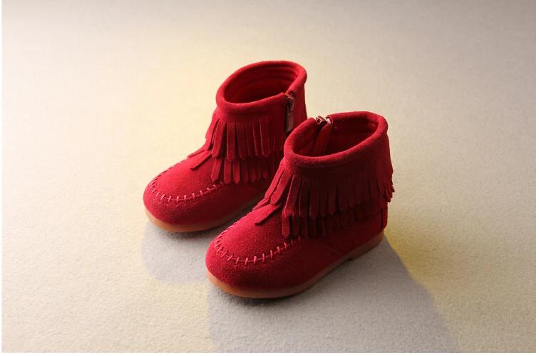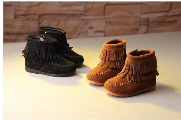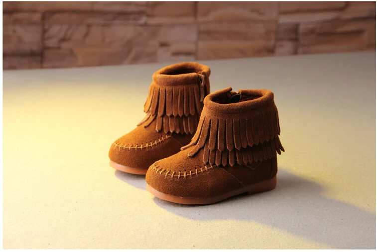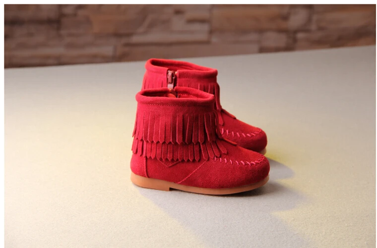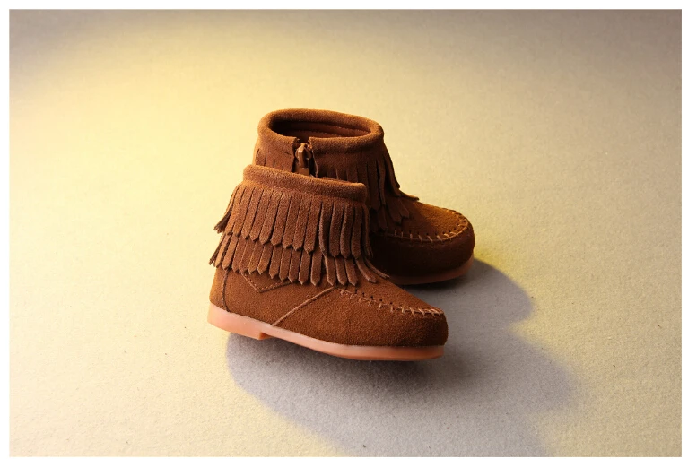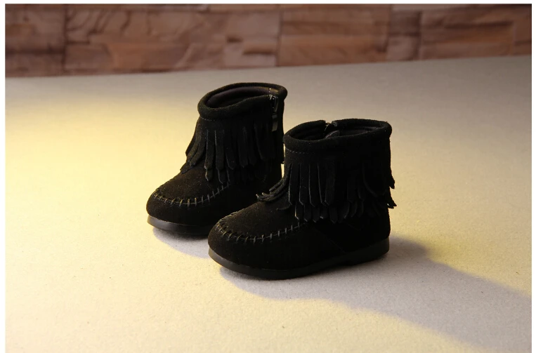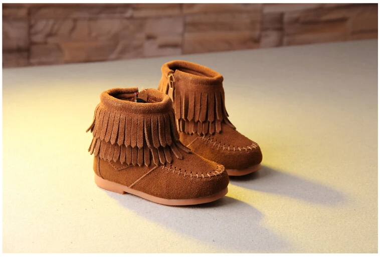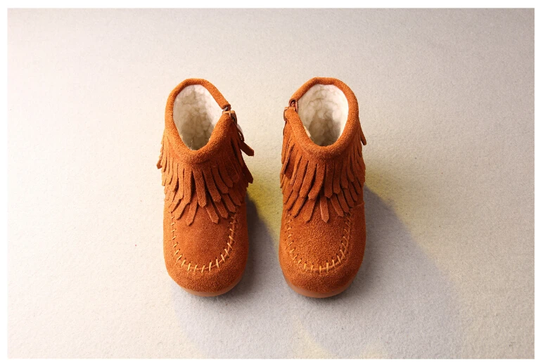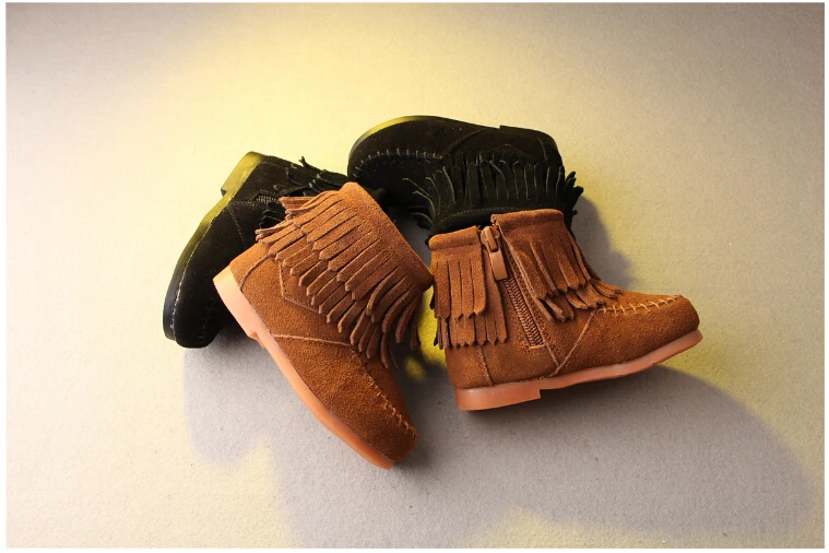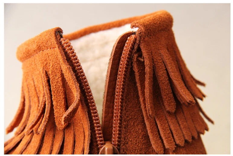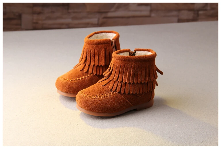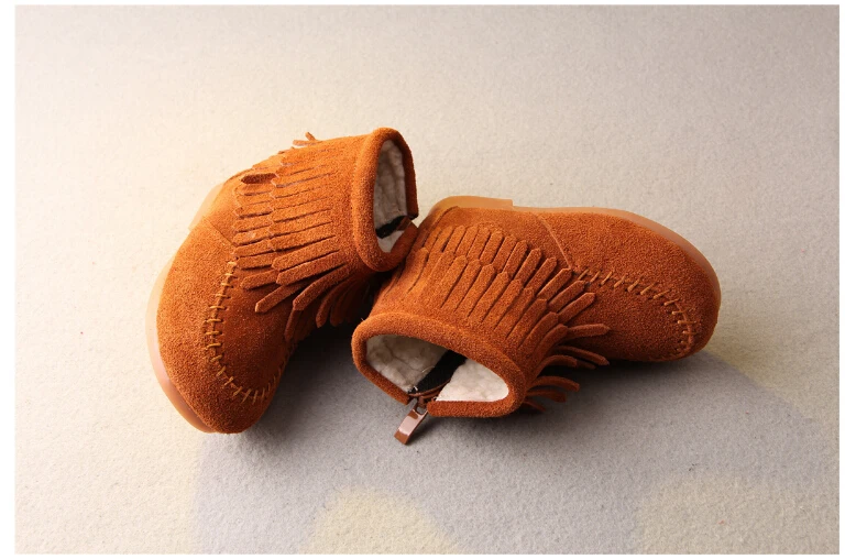 KKABBYII Girls Snow Boots New Autumn Winter Genuine Leather Fashion Fringe Boots Children Ankle Boots For Girls EUR 21-30