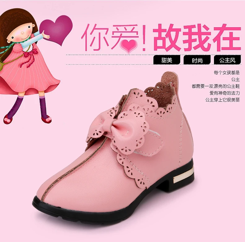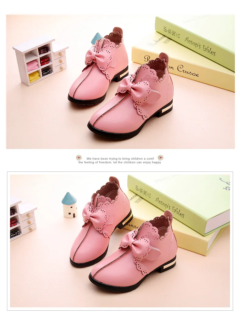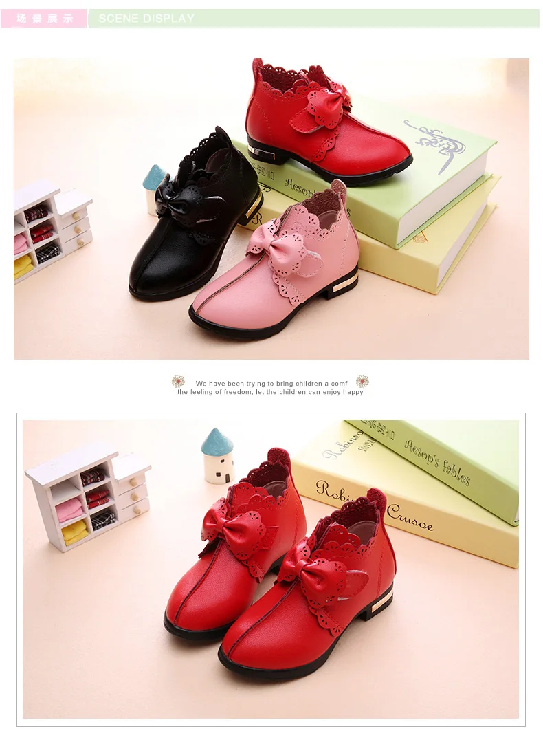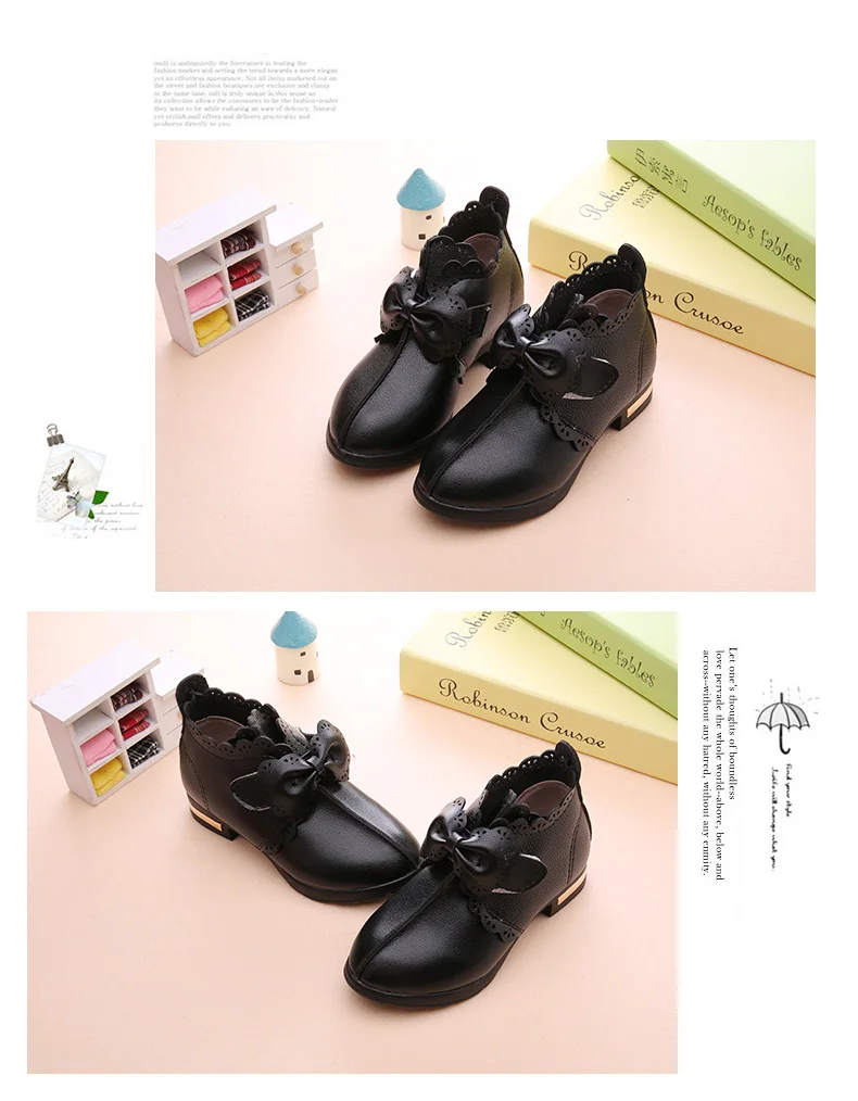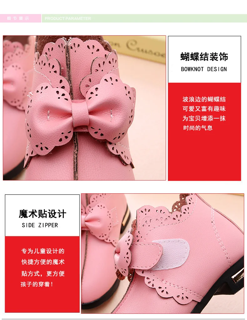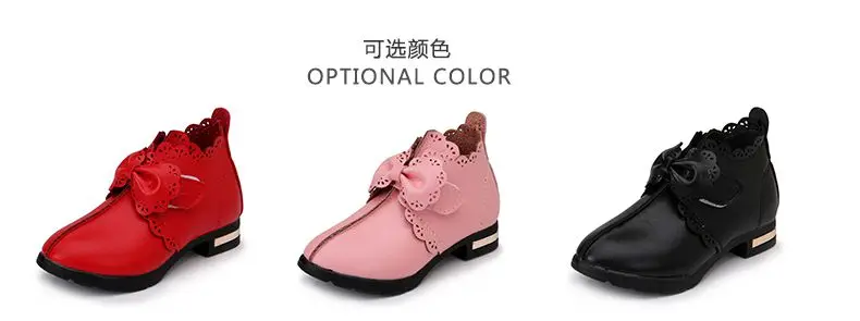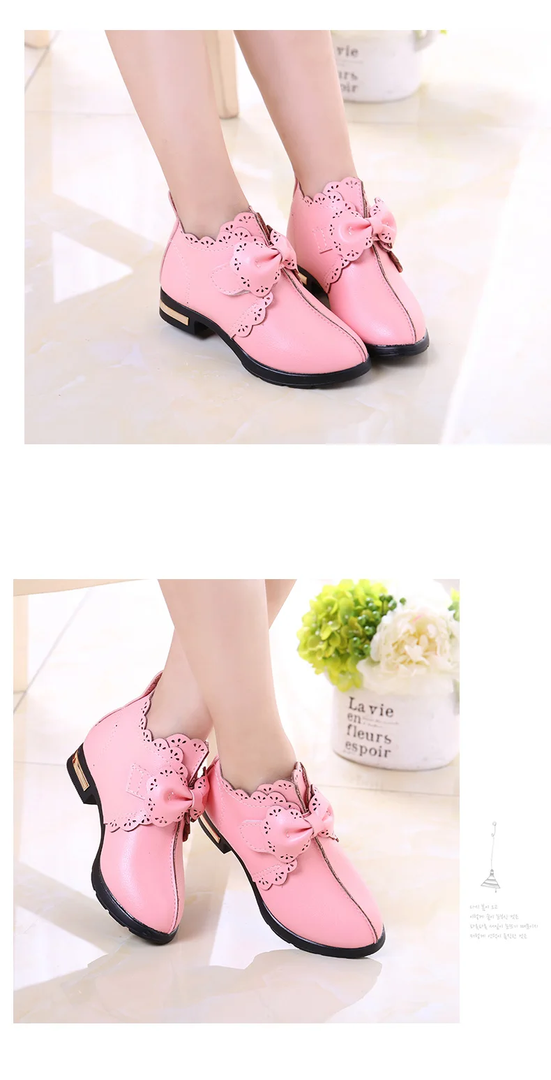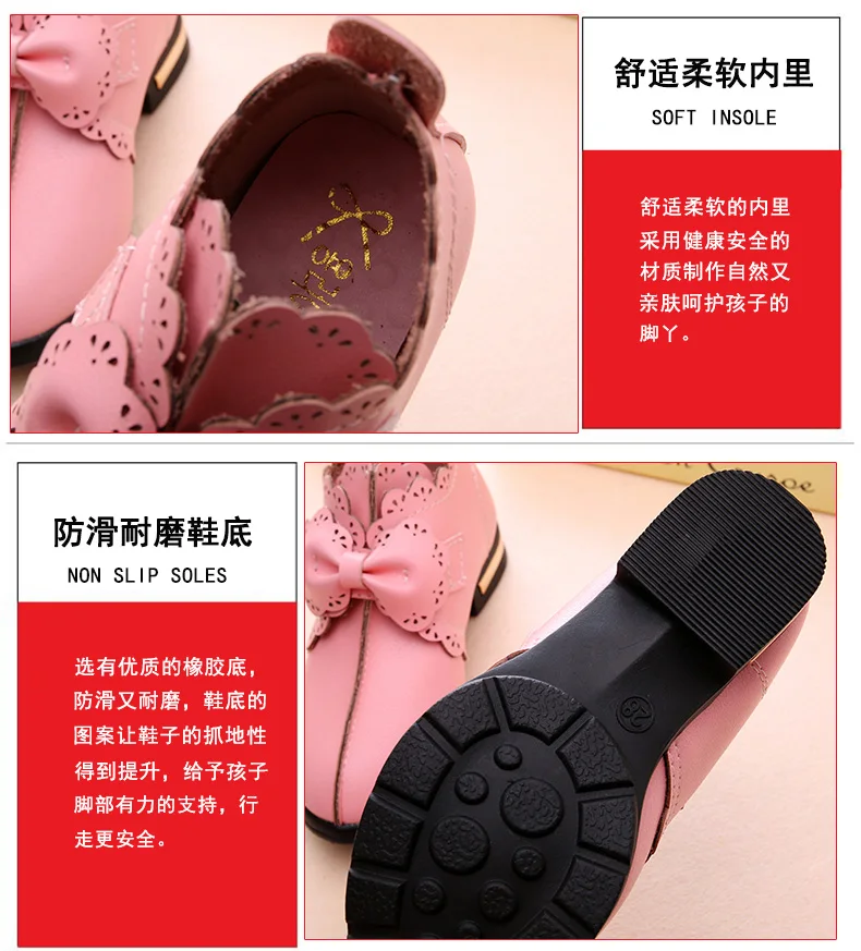 Item Name: Korean Girl Leather Shoes School Hollow Bow Princess Baby Shoes Pink Red Black