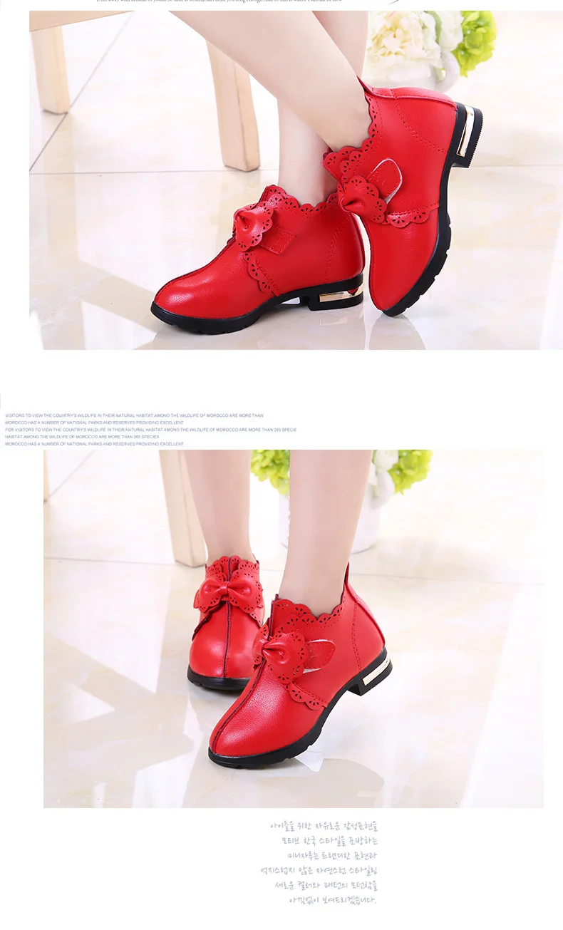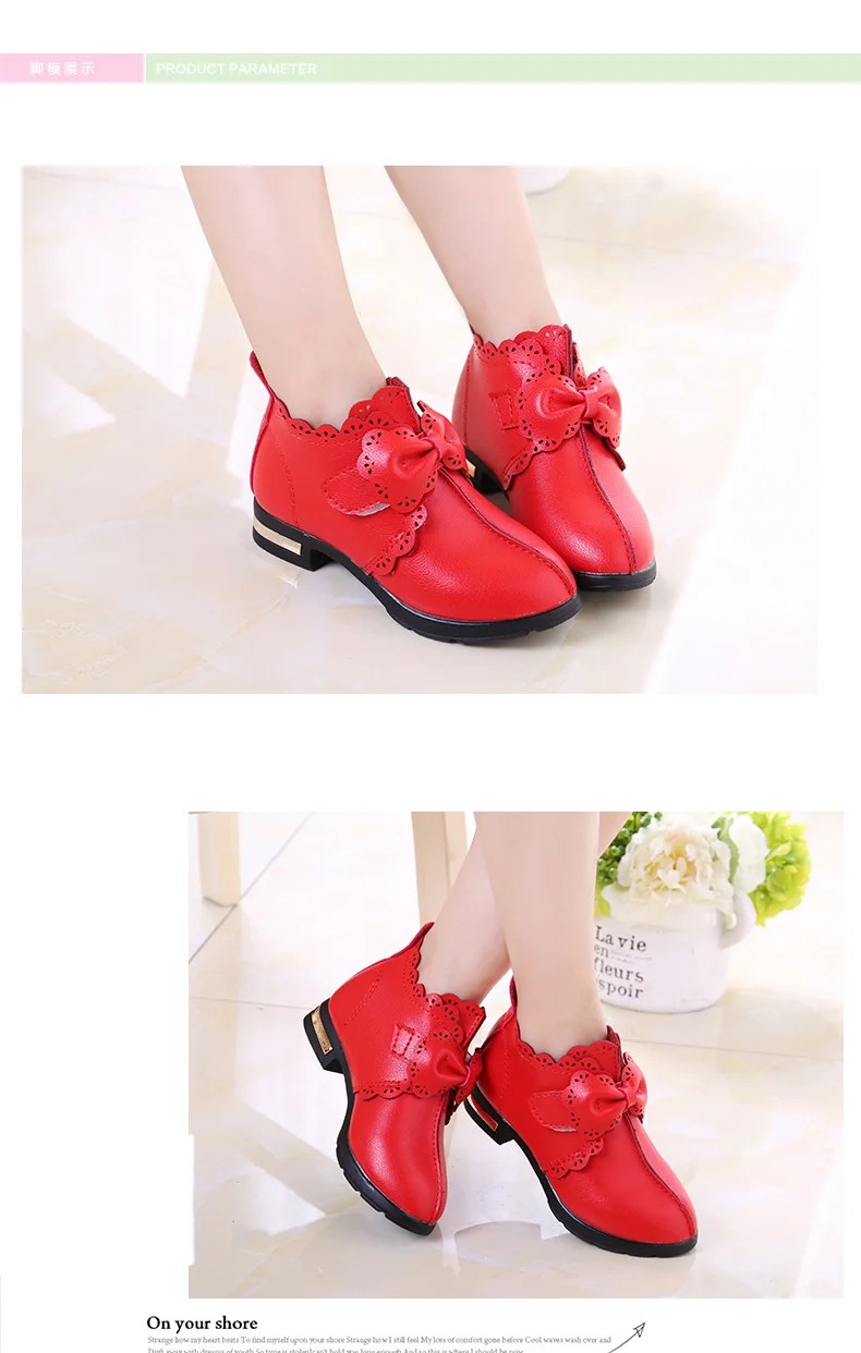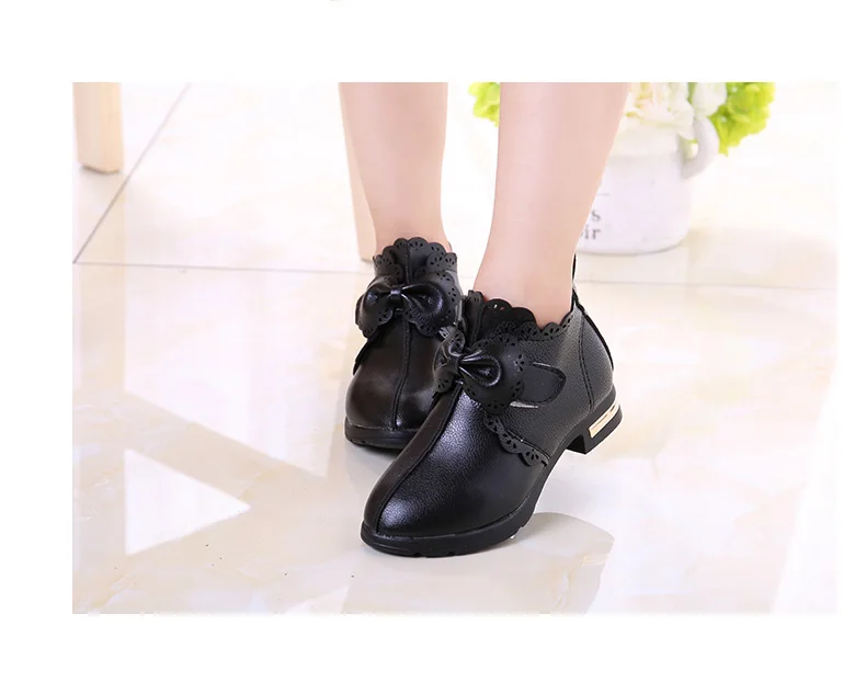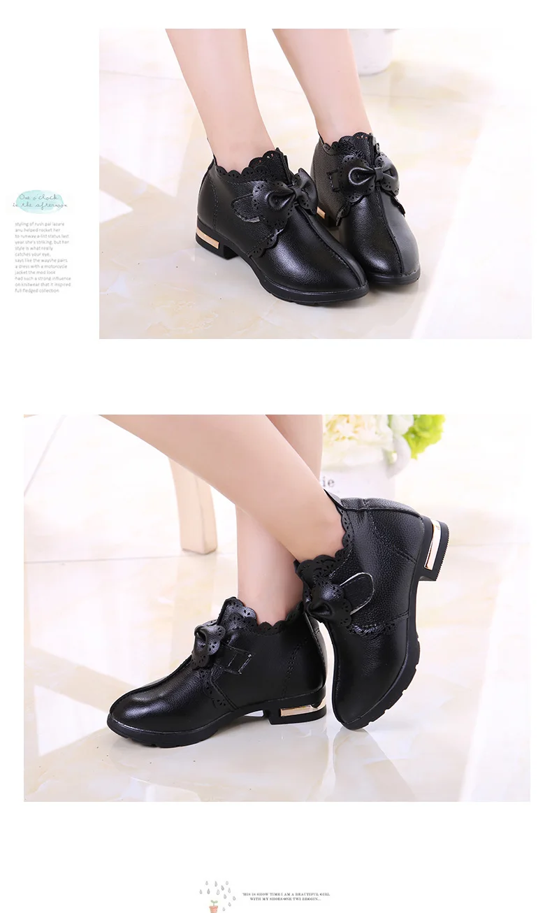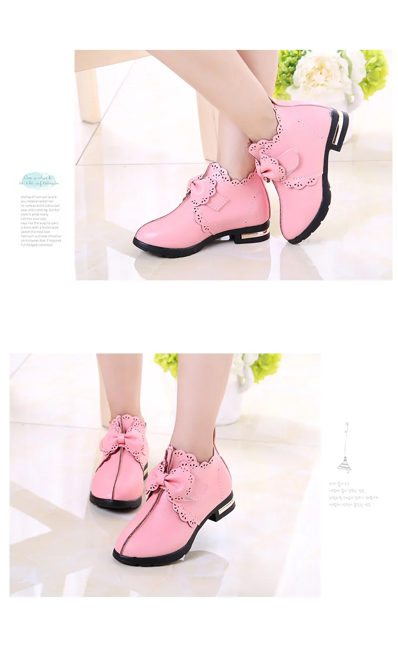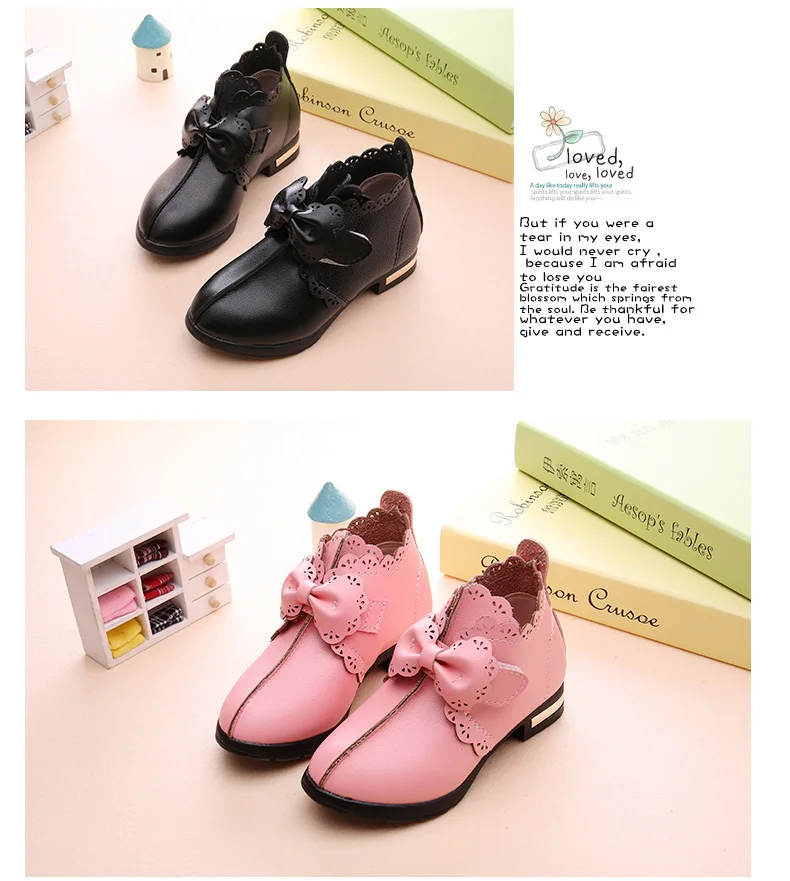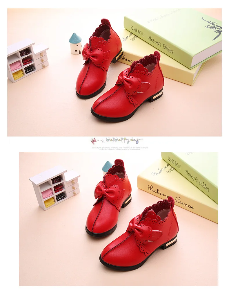 Item Name: Korean Girl Leather Shoes School Hollow Bow Princess Baby Shoes Pink Red Black