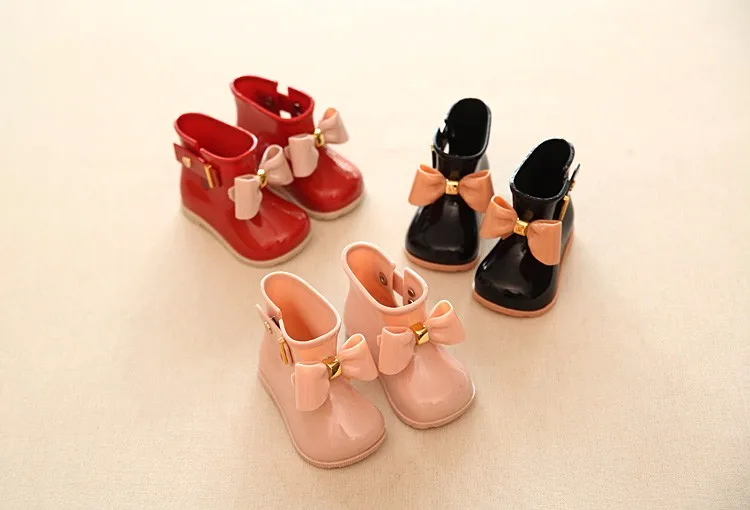 Mini Melissa 2017 Cute Rain Boots Melissa Sed’S Bow Shoes Boots Baby Jelly Shoes Fashion Boots Slip Water Shoes Boots US 5-10