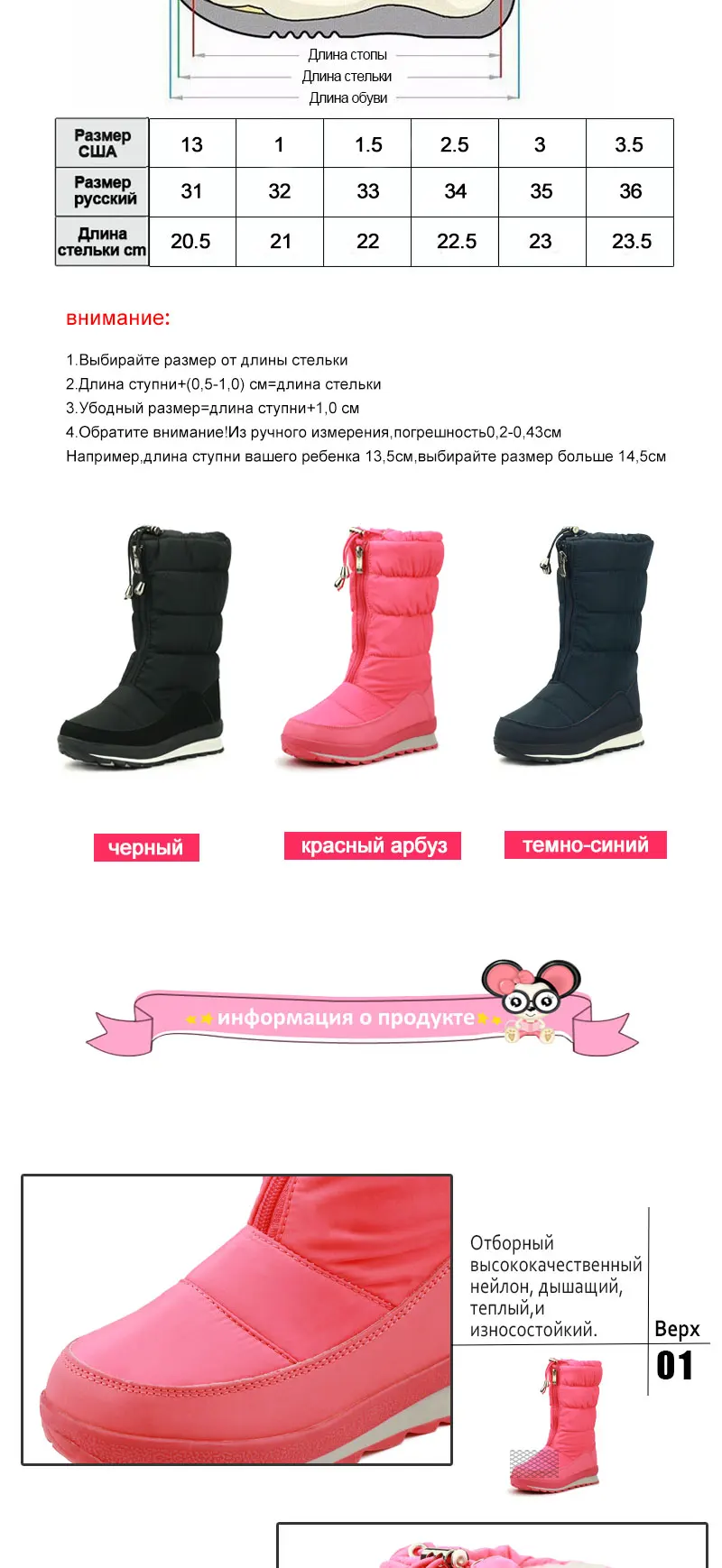 MMNUN Russian Famous Brand Winter Boots for Girls High Quality Children Winter Shoes Shoes for Big Girls Kids Boots Size 31-36