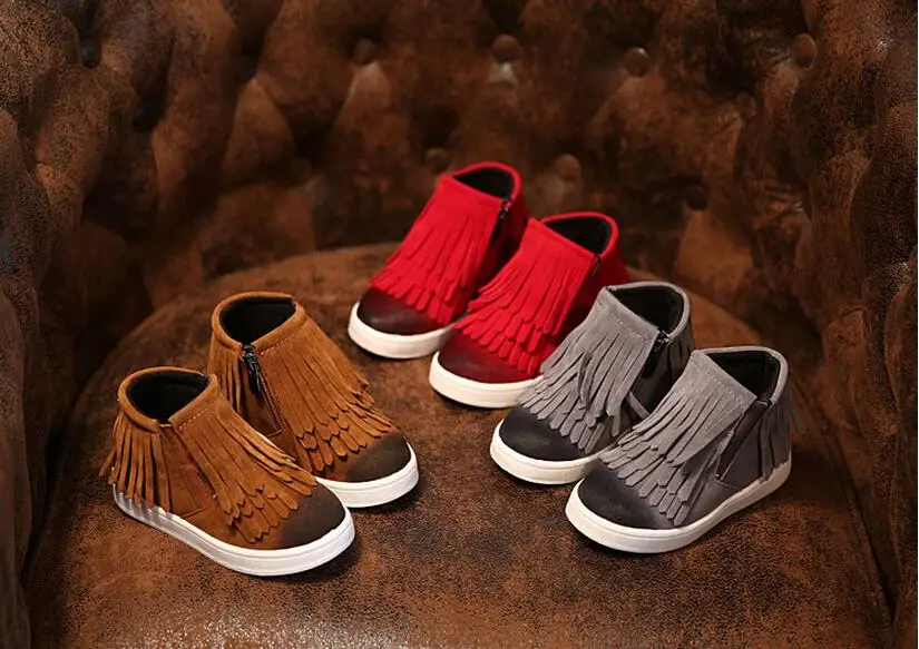 Home » » Shoes » Children's Shoes » Girls » New Spring Autumn Winter for child/kid/girl boots waterproof leather motorcycle boots fashion flats shoe fringe zip martin boots
